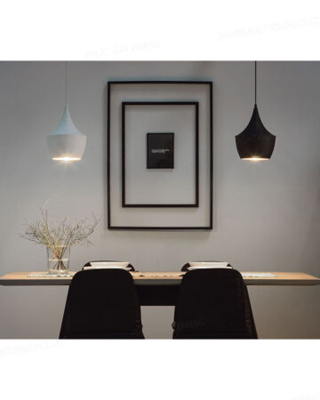 Chiếc đèn thả với chụp đèn hợp kim đơn giản đường kính 30cm, cho nguồn sáng tập trung với góc chiếu sáng 45 độ. Đèn sơn trắng bên ngoài và bên trong chụp phủ lớp mạ vàng giúp ánh sáng khuyếch tán tối đa. Cung cấp nguồn sáng bổ sung dễ chịu cho nhiều không gian như bàn ăn, góc đọc sách, làm việc, đầu giường…