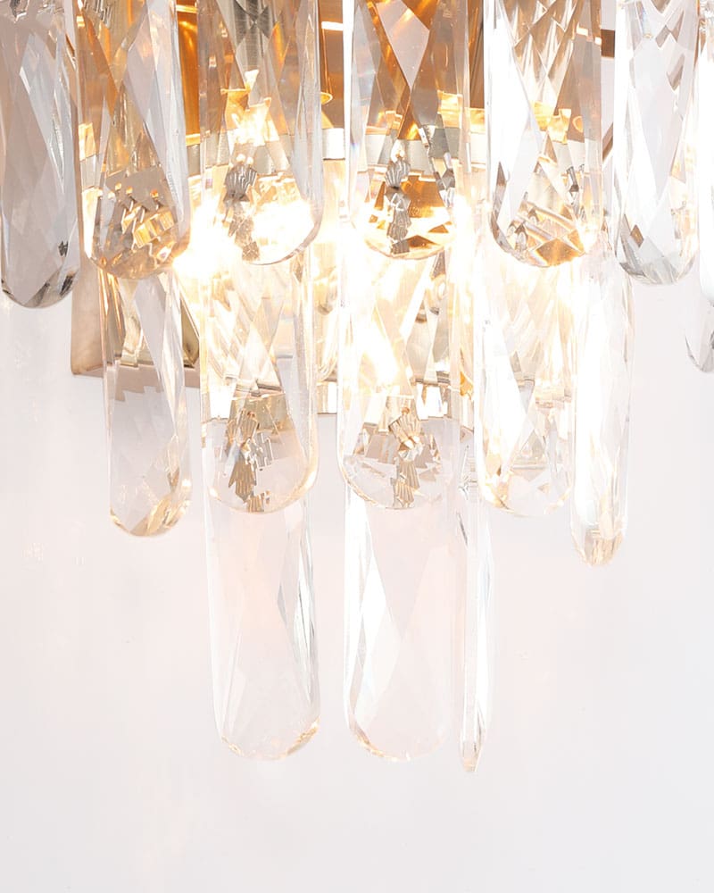 Pha lê K9 là vật liệu được ưa chuộng hiện nay được sử dụng đẹp mắt trên Đèn ốp tường pha lê cao cấp L707. Pha lê K9 với các đặc tính trong suốt và truyền sáng tốt, nhẹ và cứng cáp, giúp tạo được kiểu dáng vô cùng thú vị cho bộ đèn.