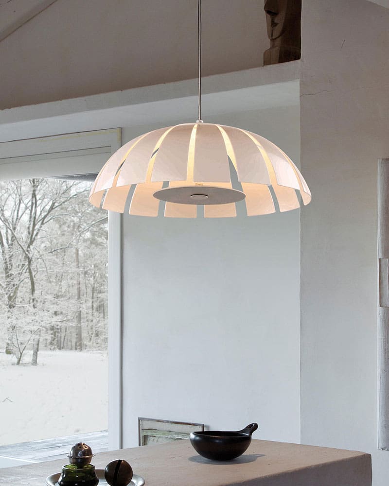 PVC là vật liệu được ưa chuộng hiện nay được sử dụng đẹp mắt trên Đèn thả trang trí bàn ăn phong cách hiện đại L9095. PVC với các đặc tính trong suốt và truyền sáng tốt, nhẹ và cứng cáp, giúp tạo được kiểu dáng vô cùng thú vị cho bộ đèn.