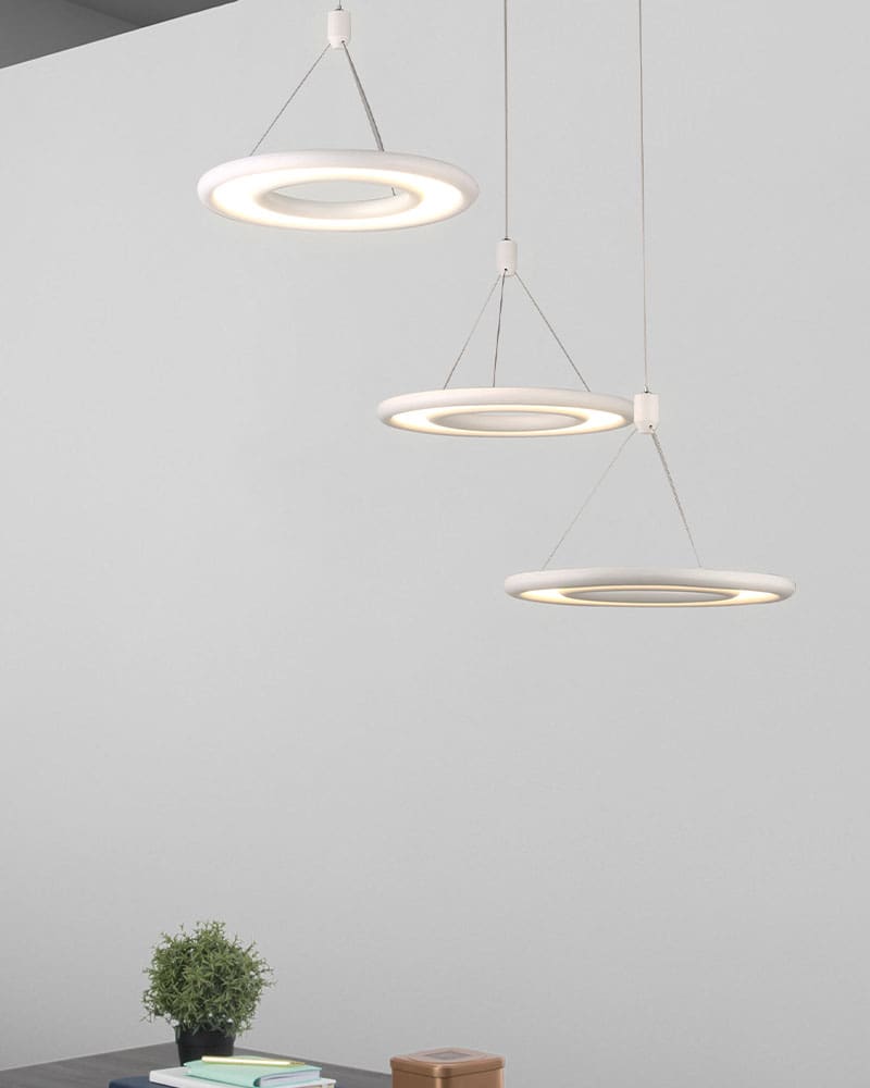PVC là vật liệu được ưa chuộng hiện nay được sử dụng đẹp mắt trên Đèn thả LED 3 bóng trang trí bàn ăn hiện đại L8024. PVC với các đặc tính trong suốt và truyền sáng tốt, nhẹ và cứng cáp, giúp tạo được kiểu dáng vô cùng thú vị cho bộ đèn.