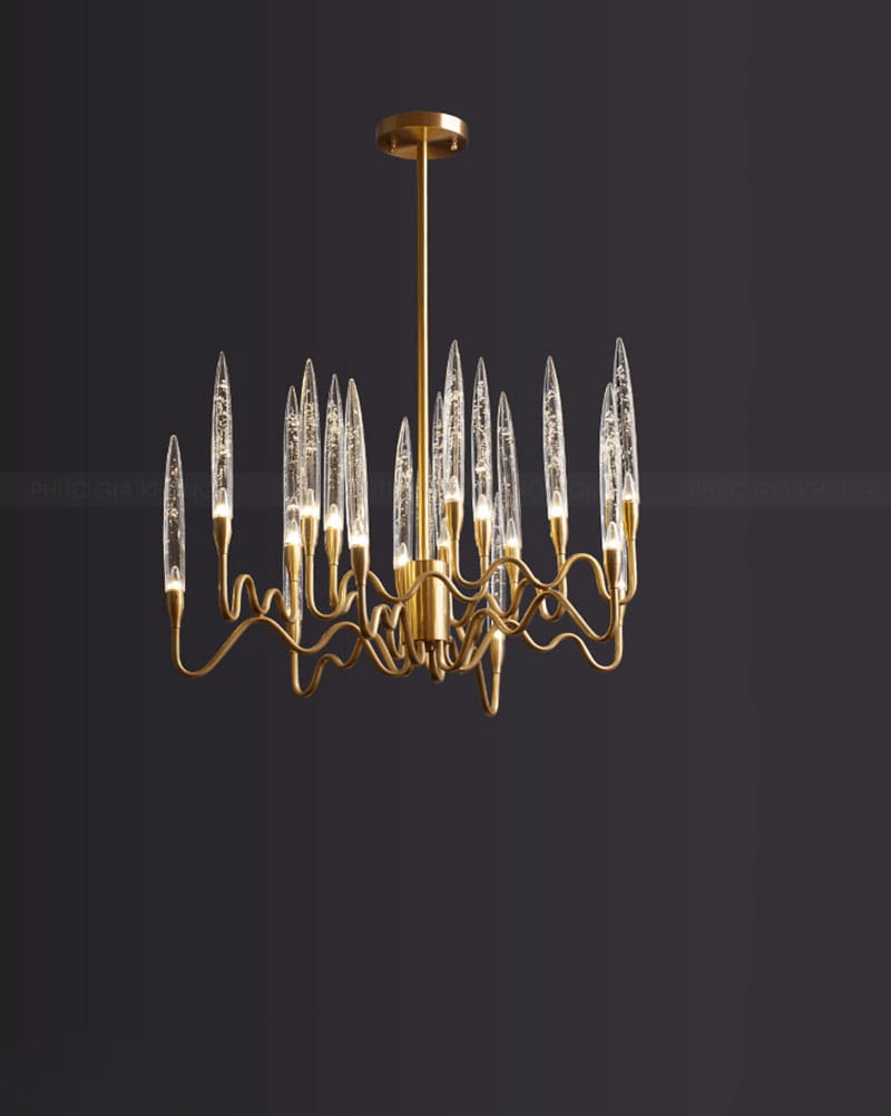 Thủy tinh acrylic là vật liệu được ưa chuộng hiện nay được sử dụng đẹp mắt trên Đèn chùm pha lê nến hiện đại LH858/24. Thủy tinh acrylic với các đặc tính trong suốt và truyền sáng tốt, nhẹ và cứng cáp, giúp tạo được kiểu dáng vô cùng thú vị cho bộ đèn.