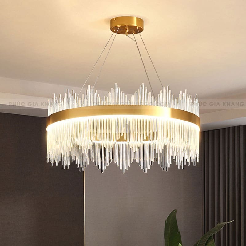 Pha lê là vật liệu được ưa chuộng hiện nay được sử dụng đẹp mắt trên Đèn thả vòng tròn pha lê cao cấp VIRGO L1006. Pha lê với các đặc tính trong suốt và truyền sáng tốt, nhẹ và cứng cáp, giúp tạo được kiểu dáng vô cùng thú vị cho bộ đèn.