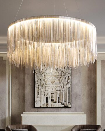 Đèn thả trần trang trí VIRGO DL21 được thiết kế vô cùng sinh động với vòng tròn bằng xích sắt. Các sợi xích được chiếu sáng bởi các bóng đèn LED nhỏ gắn dọc theo khung vòng tròn của đèn. Mẫu đèn trang trí mang đến cảm giác vô cùng sinh động và một sức sống mới cho không gian của bạn. Với sự đầu tư trong thiết kế, chỉn chu trong từng giai đoạn gia công, chiếc đèn chùm của VIRGO sẽ làm bạn hài lòng và yêu thích nó khi trang trí cho căn phòng của mình.