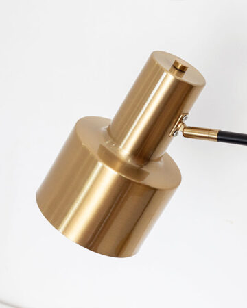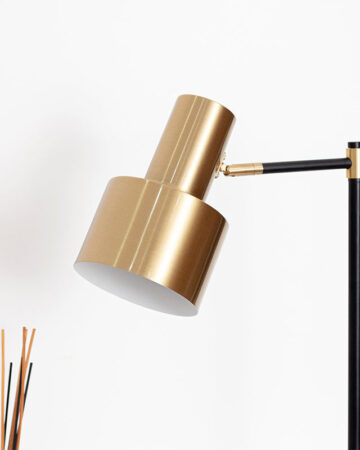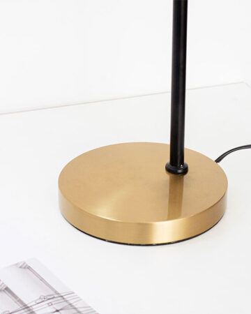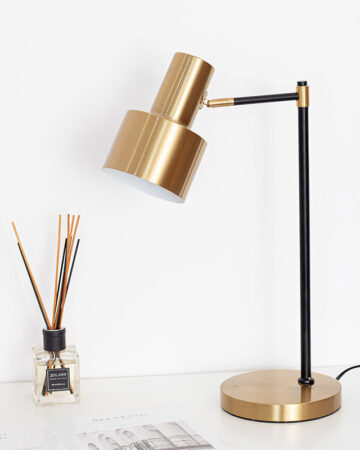 Chiếc đèn để bàn sở hữu kiểu dáng đơn giản, hiện đại với thân đèn hợp kim và chụp đèn xi vàng nổi bật. Chiếc đèn cho cách sử dụng tiện lợi với hướng ánh sáng điều chỉnh linh hoạt. Sử dụng trang trí và chiếu sáng cho nhiều không gian như phòng khách, phòng ngủ, bàn làm việc, bàn học…