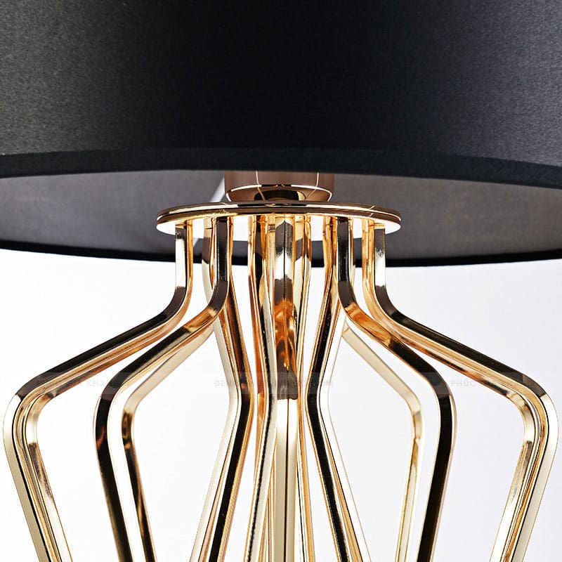 Đèn để bàn chụp vải đen thân vàng cao cấp, đèn ngủ cổ điển LA6616