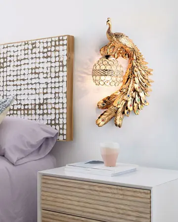 Khung Đèn tường chim công trang trí cao cấp HF9098 sử dụng vật liệu Hợp kim,Acrylic, vật liệu vừa mang đến trọng lượng nhẹ, sử dụng an toàn, vừa đảm bảo sự cứng cáp, sử dụng bền lâu. Đèn tường chim công trang trí cao cấp HF9098 cho khả năng sử dụng bền bỉ, lâu dài.