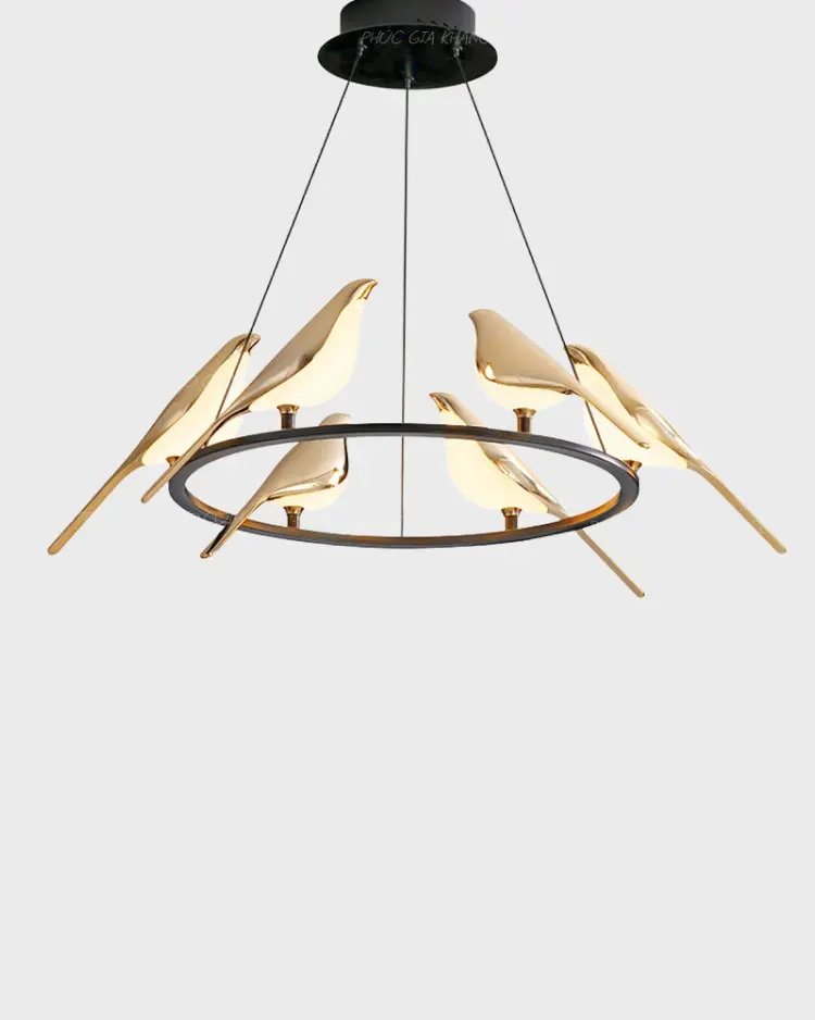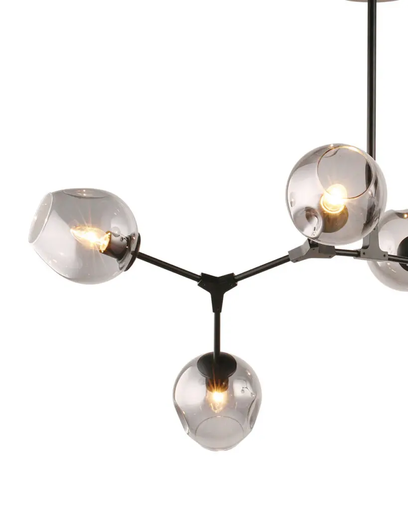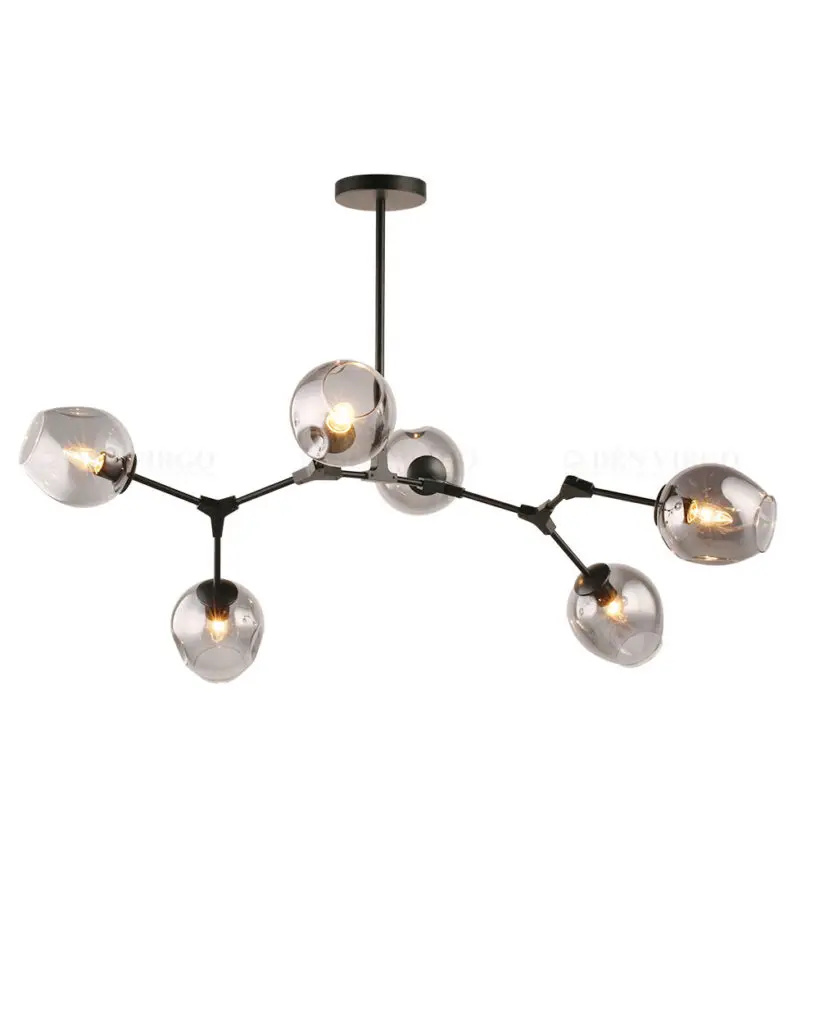 Đèn chùm 6 bóng thân đen chụp thủy tinh khói hiện đại LV8085/6