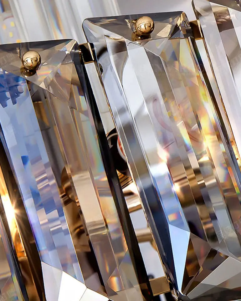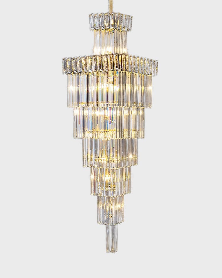 Pha lê là vật liệu được ưa chuộng hiện nay được sử dụng đẹp mắt trên Đèn chùm pha lê thông tầng cao cấp VIRGO K0826. Pha lê với các đặc tính trong suốt và truyền sáng tốt, nhẹ và cứng cáp, giúp tạo được kiểu dáng vô cùng thú vị cho bộ đèn.