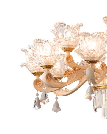 Đèn chùm trang trí V248 là một sản phẩm có thiết kế ấn tượng với 15 bóng. Vật liệu chính của bộ đèn là pha lê chất lượng cao, được gia công tỉ mỉ theo phong cách cổ điển. Điểm đặc biệt của bộ đèn là các chụp đèn được gia công lấy cảm hứng từ hoa thủy tiên trong suốt.