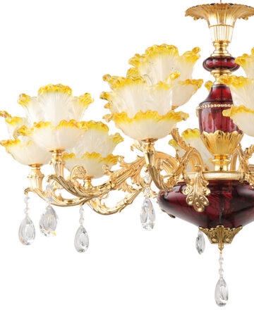 Đèn chùm trang trí thủy tinh V231 là một sản phẩm có thiết kế cổ điển được yêu thích. Với tạo hình các chụp đèn như những bông hoa mang ánh sáng, đem đến nét sang trọng đầy ấn tượng cho không gian của bạn. Thân đèn cứng cáp được gia công từ vật liệu hợp kim nhôm xi mạ PVD chất lượng cao.