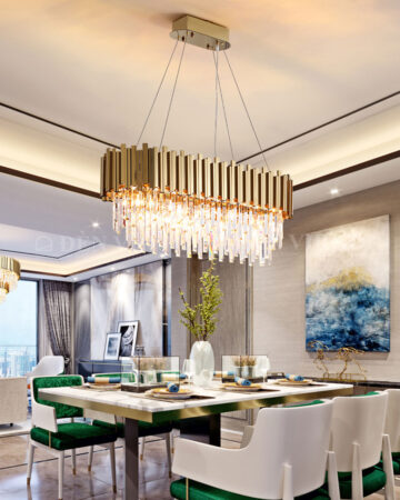Đèn chùm pha lê H877A là một sản phẩm rất được yêu thích vì mang đến vẻ sang trọng tuyệt vời cho không gian của gia đình bạn. Bộ đèn được thiết kế tương phản giữa 2 màu sắc vàng bóng và pha lê trong suốt sang trọng.