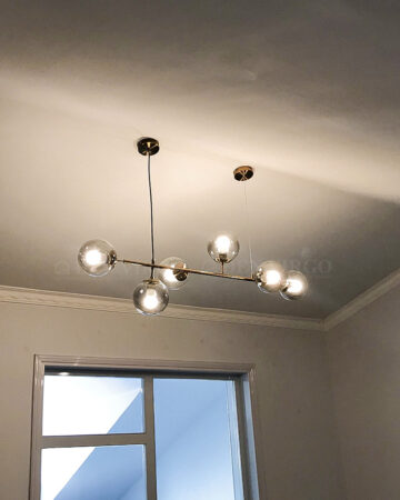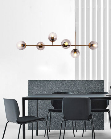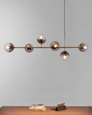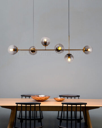 Vẻ đẹp đơn giản, hiện đại và ánh sáng hấp dẫn của bộ đèn 6 bóng được đánh giá cao của VIRGO. Sản phẩm không chỉ chiếu sáng mà còn góp phần làm tăng vẻ duyên dáng và ấm cúng cho không gian bàn ăn. Thủy tinh tối màu giúp ánh sáng mềm mại, không gây chói khó chịu cho mắt.