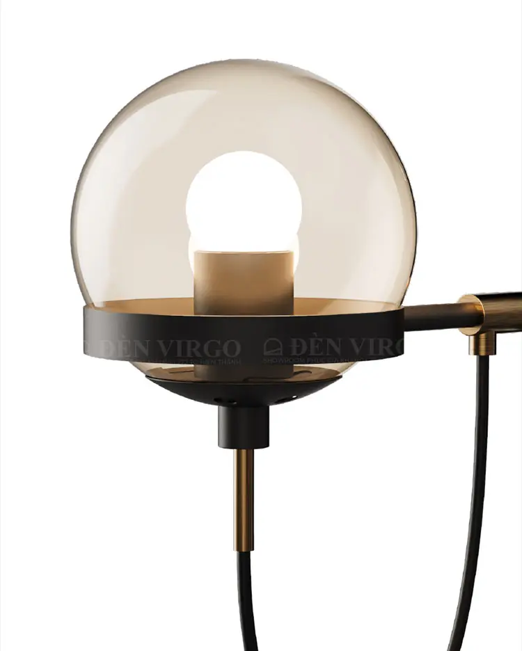 Chiếc đèn trang trí với thiết kế nhỏ gọn, gây ấn tượng bởi vẻ ngoài thú vị, mang nguồn sáng bổ sung dễ chịu cho không gian. Chiếc đèn sử dụng chụp thủy tinh hình cầu 15cm, cung cấp nguồn sáng mềm mại, dễ chịu cho mắt cho các hoạt động. Với thiết kế hiện đại, chiếc đèn có thể sử dụng tiện lợi cho các khu vực như góc đọc sách – làm việc, bàn trang điểm, chiếu sáng cầu thang…