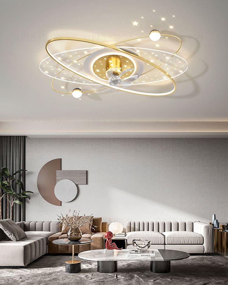 Thủy tinh acrylic là vật liệu được ưa chuộng hiện nay được sử dụng đẹp mắt trên Đèn ốp trần có quạt cao cấp C9080. Thủy tinh acrylic với các đặc tính trong suốt và truyền sáng tốt, nhẹ và cứng cáp, giúp tạo được kiểu dáng vô cùng thú vị cho bộ đèn.