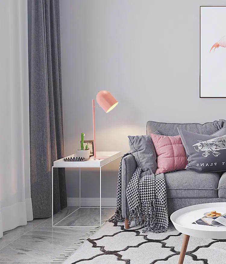 Đèn bàn nhôm sơn hồng pastel