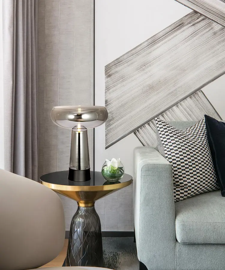 Đèn bàn chao thủy tinh màu ám khói