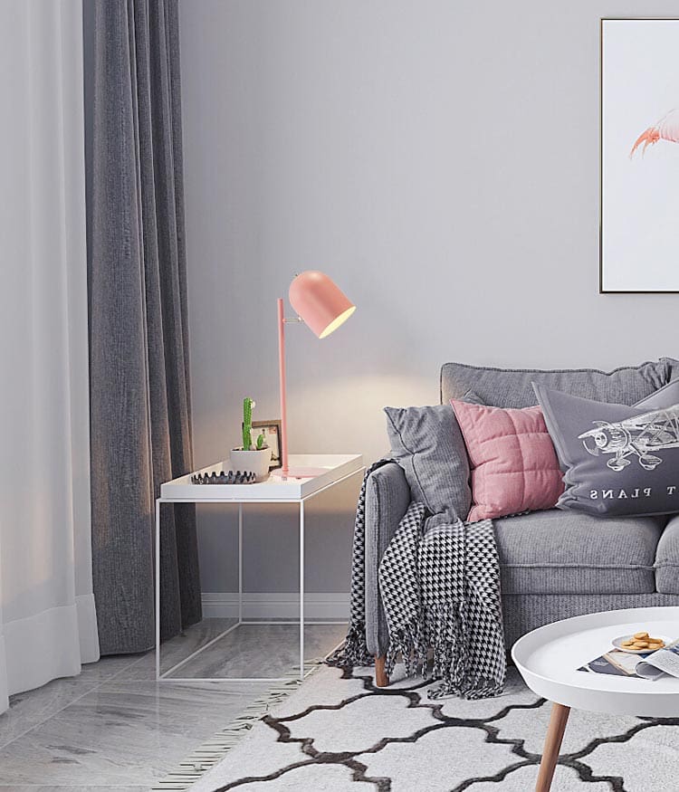 Đây là chiếc đèn bàn có màu sắc hồng nhẹ nhàng. Phần chụp đèn xoay nhiều hướng thích hợp để đọc sách tại phòng khách. Sở hữu tông màu hồng pastel (gam màu nhạt, dịu mắt) nên rất dễ ứng dụng trong nội thất hiện đại. Trái với suy nghĩ của nhiều người màu sắc này khá nữ tính, tuy nhiên nếu ứng dụng hợp lý đây sẽ là điểm nhấn rất độc đáo và hút mắt cho căn phòng của bạn.