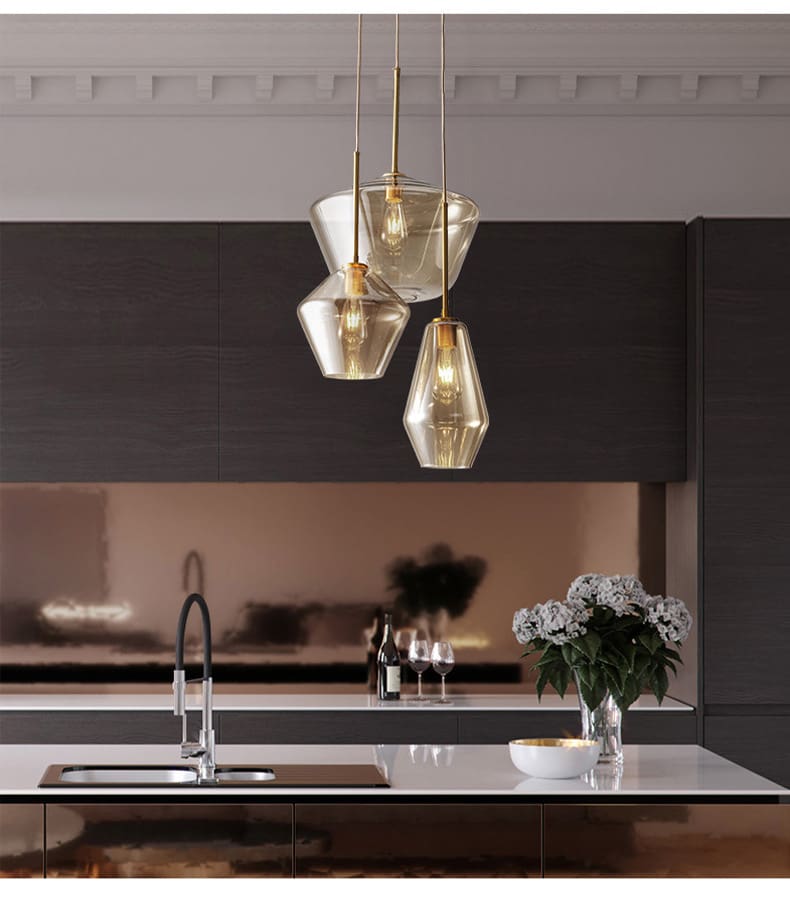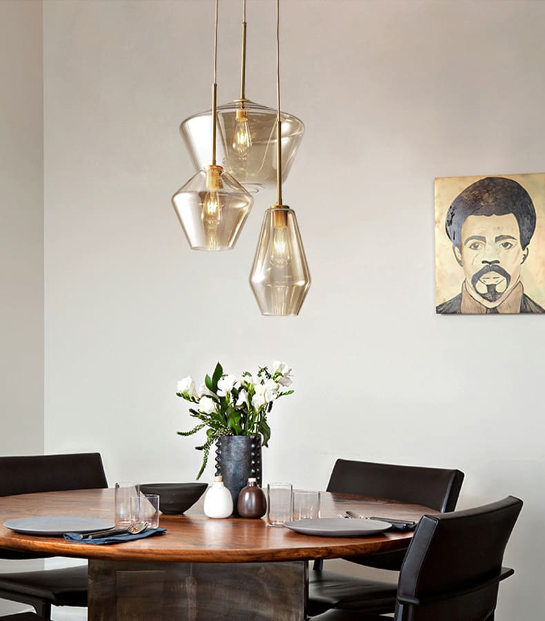 Thủy tinh là vật liệu được ưa chuộng hiện nay được sử dụng đẹp mắt trên Đèn thả thủy tinh cao cấp P860/3. Thủy tinh với các đặc tính trong suốt và truyền sáng tốt, nhẹ và cứng cáp, giúp tạo được kiểu dáng vô cùng thú vị cho bộ đèn.