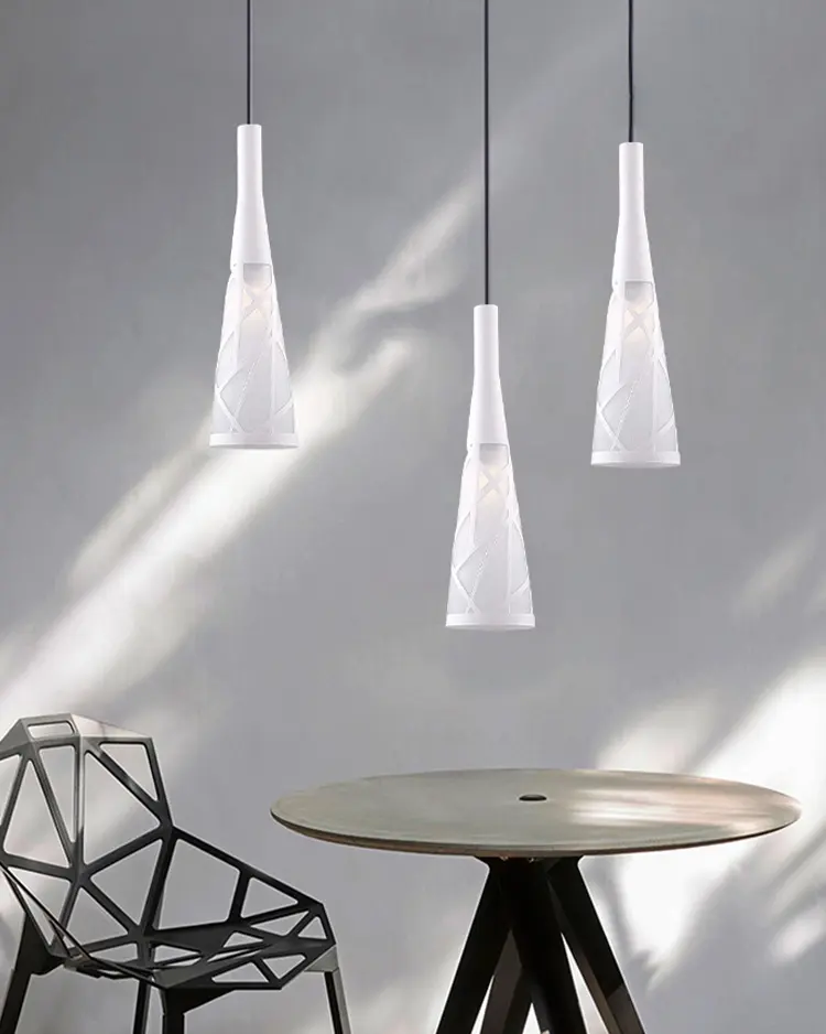Thủy tinh là vật liệu được ưa chuộng hiện nay được sử dụng đẹp mắt trên Đèn thả trang trí thủy tinh P8760. Thủy tinh với các đặc tính trong suốt và truyền sáng tốt, nhẹ và cứng cáp, giúp tạo được kiểu dáng vô cùng thú vị cho bộ đèn.