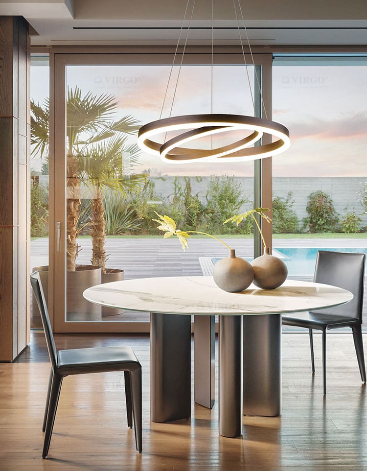 PVC là vật liệu được ưa chuộng hiện nay được sử dụng đẹp mắt trên Đèn thả LED 2 vòng P7051/2S. PVC với các đặc tính trong suốt và truyền sáng tốt, nhẹ và cứng cáp, giúp tạo được kiểu dáng vô cùng thú vị cho bộ đèn.