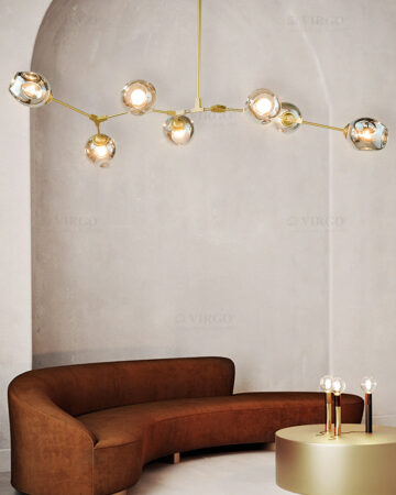 Đèn chùm thủy tinh P8085/7 sử dụng chụp đèn thủy tinh chất lượng cao, chụp đèn thủy tinh bóng loáng và độ truyền sáng cao, dày dặn, đảm bảo khả năng sử dụng lâu bền.