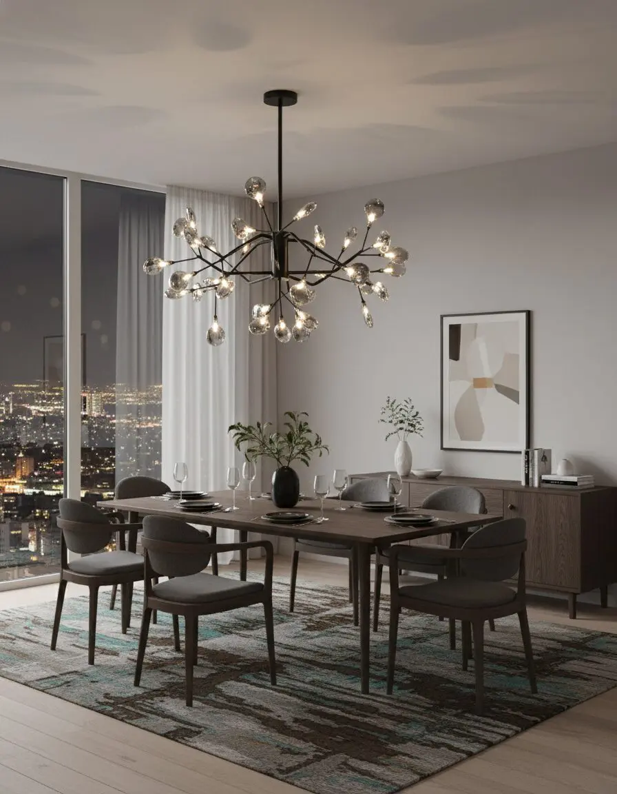 là vật liệu được ưa chuộng hiện nay được sử dụng đẹp mắt trên Đèn chùm 33 bóng thủy tinh khói cao cấp VIRGO P1043K. với các đặc tính trong suốt và truyền sáng tốt, nhẹ và cứng cáp, giúp tạo được kiểu dáng vô cùng thú vị cho bộ đèn.