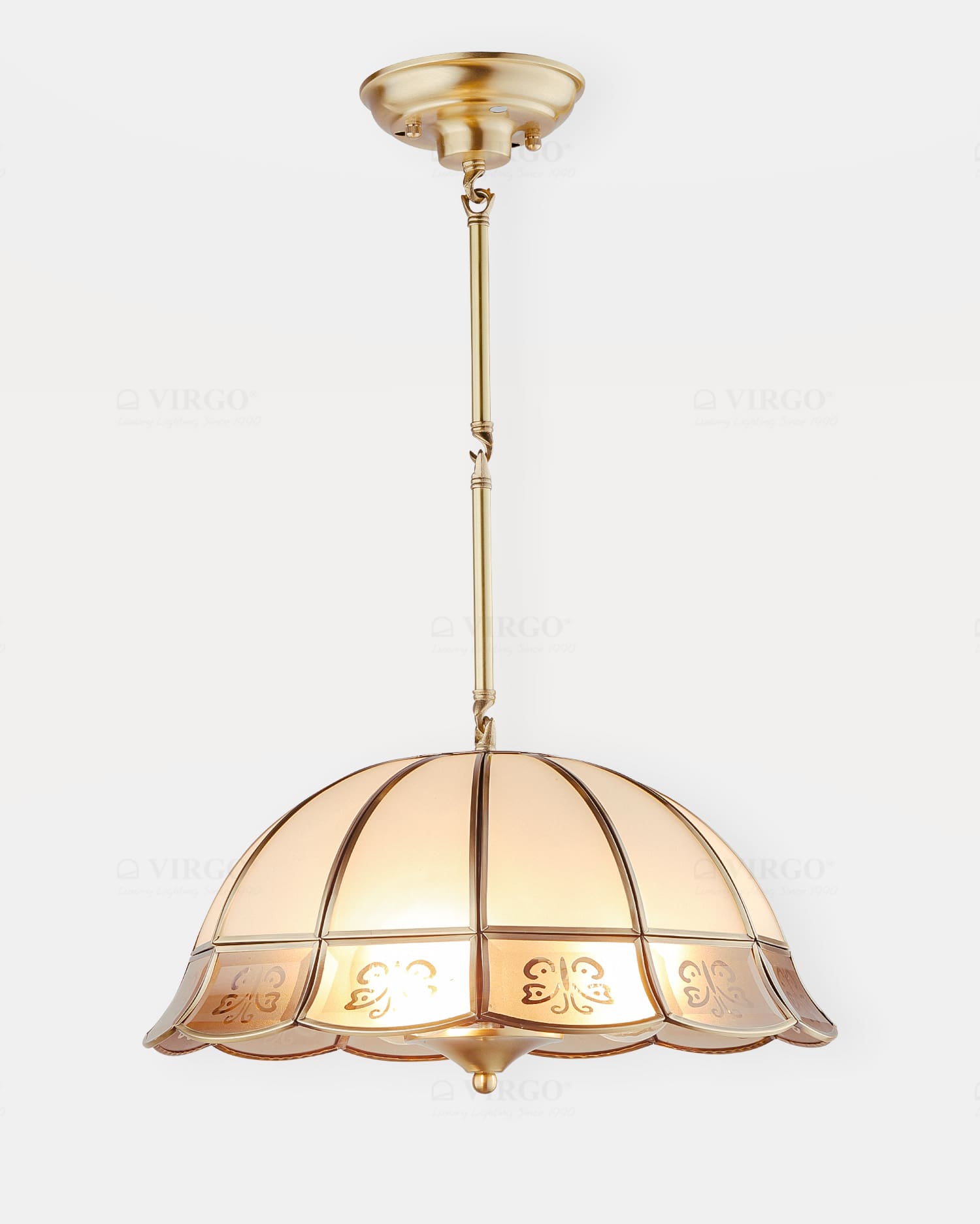 Thủy tinh là vật liệu được ưa chuộng hiện nay được sử dụng đẹp mắt trên Đèn thả chụp đồng cao cấp P2323. Thủy tinh với các đặc tính trong suốt và truyền sáng tốt, nhẹ và cứng cáp, giúp tạo được kiểu dáng vô cùng thú vị cho bộ đèn.