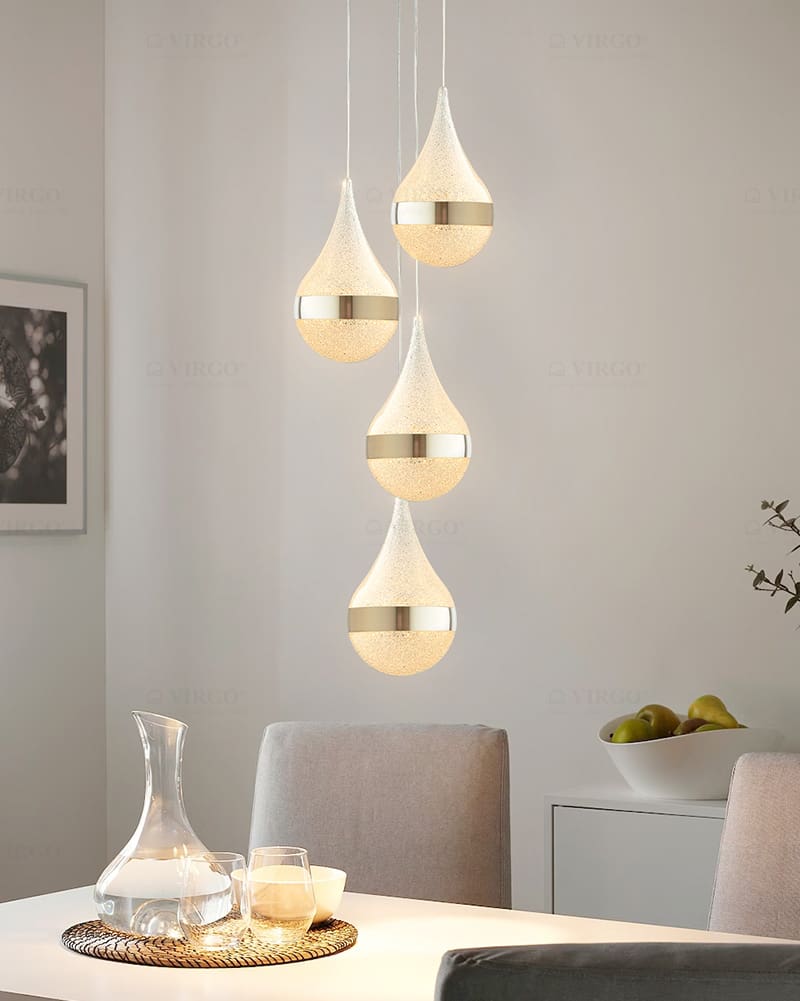 Thủy tinh acrylic là vật liệu được ưa chuộng hiện nay được sử dụng đẹp mắt trên Đèn thả LED giọt nước cao cấp P7365/1. Thủy tinh acrylic với các đặc tính trong suốt và truyền sáng tốt, nhẹ và cứng cáp, giúp tạo được kiểu dáng vô cùng thú vị cho bộ đèn.
