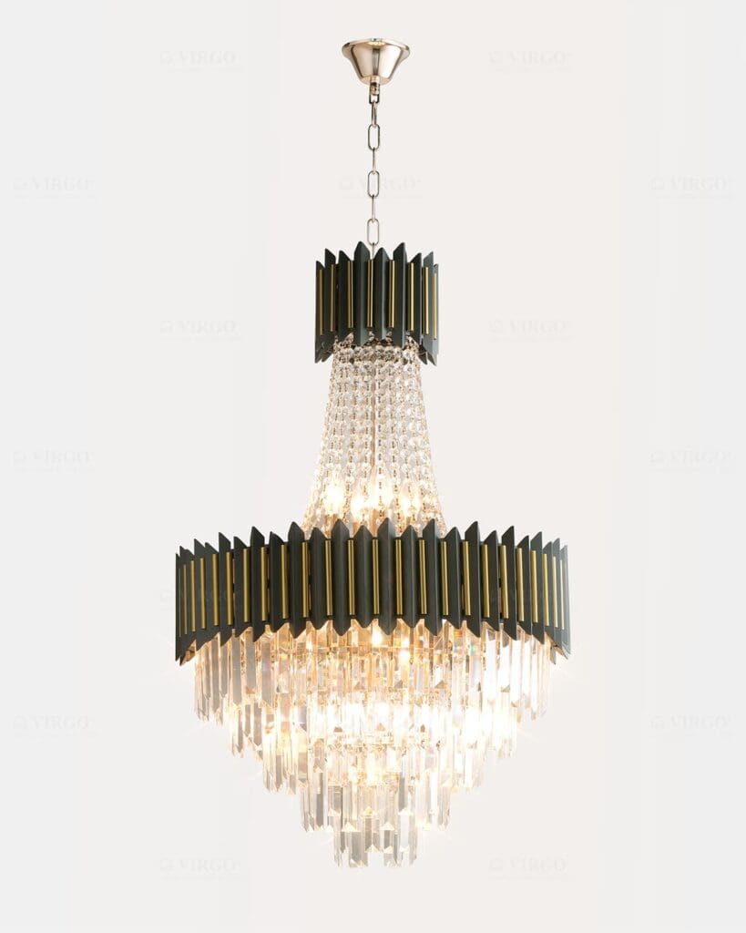 là vật liệu được ưa chuộng hiện nay được sử dụng đẹp mắt trên Đèn chùm pha lê cao cấp VIRGO P8246. với các đặc tính trong suốt và truyền sáng tốt, nhẹ và cứng cáp, giúp tạo được kiểu dáng vô cùng thú vị cho bộ đèn.