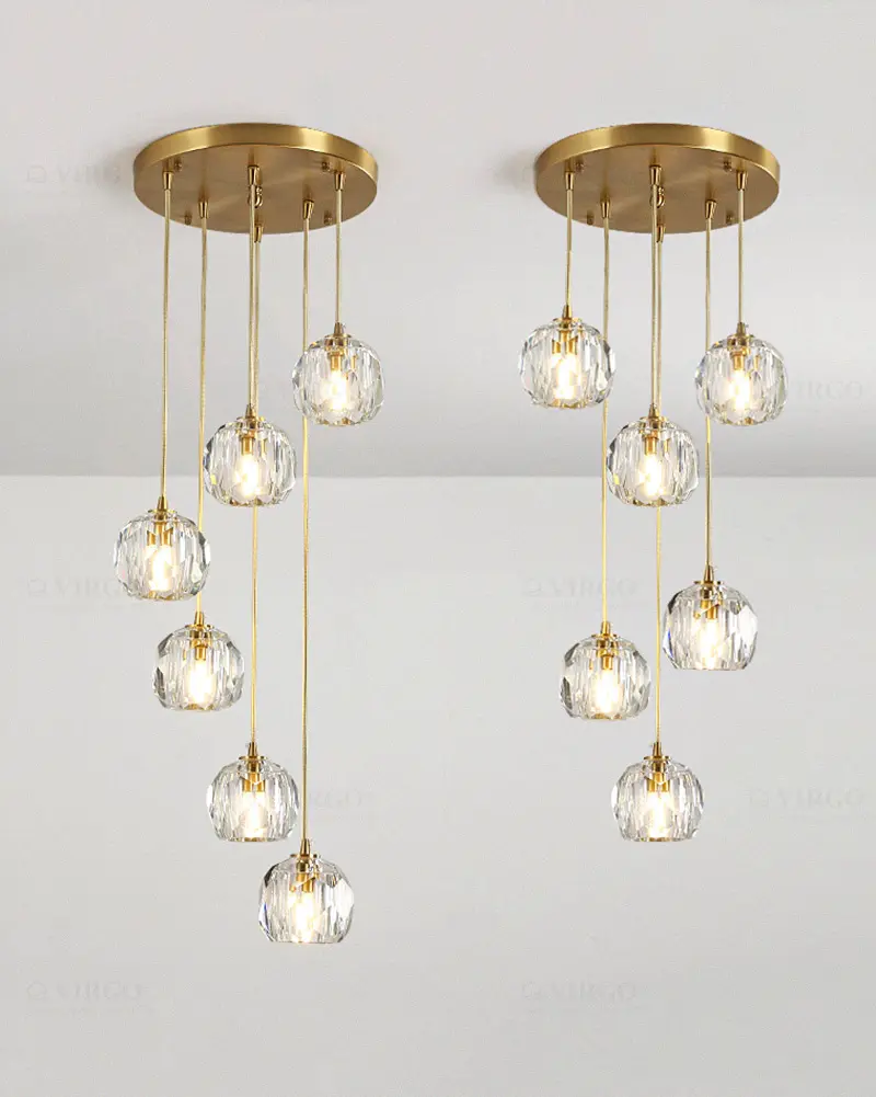 Pha lê là vật liệu được ưa chuộng hiện nay được sử dụng đẹp mắt trên Đèn thả trang trí pha lê cao cấp P6412/4P. Pha lê với các đặc tính trong suốt và truyền sáng tốt, nhẹ và cứng cáp, giúp tạo được kiểu dáng vô cùng thú vị cho bộ đèn.