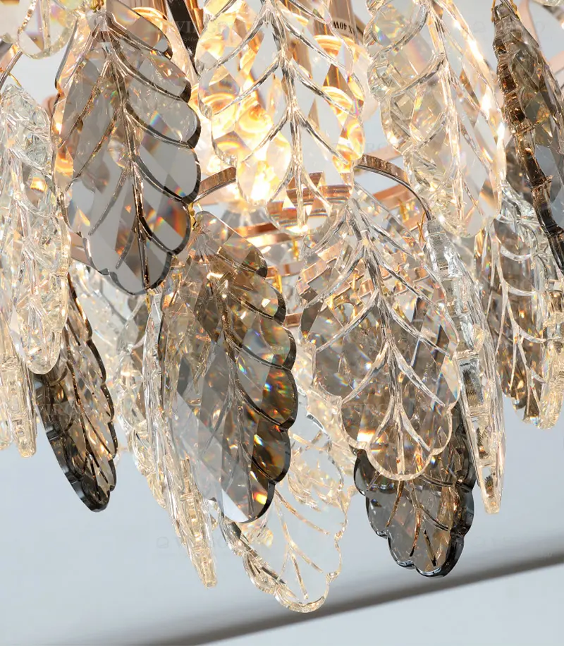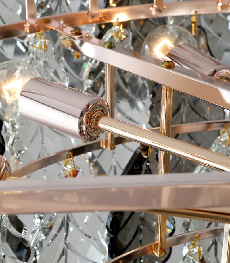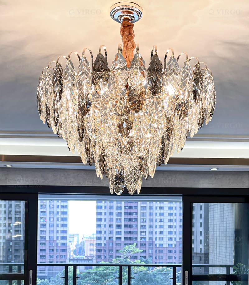 Pha lê là vật liệu được ưa chuộng hiện nay được sử dụng đẹp mắt trên Đèn chùm pha lê cao cấp P8021/80. Pha lê với các đặc tính trong suốt và truyền sáng tốt, nhẹ và cứng cáp, giúp tạo được kiểu dáng vô cùng thú vị cho bộ đèn.
