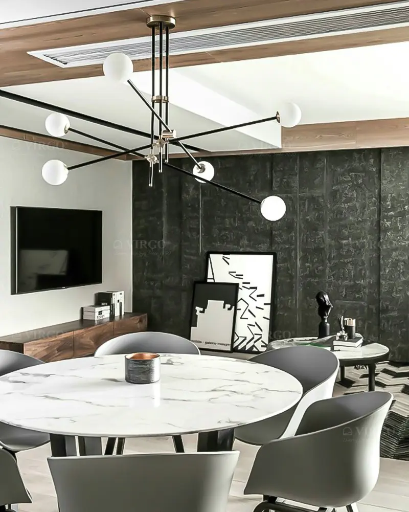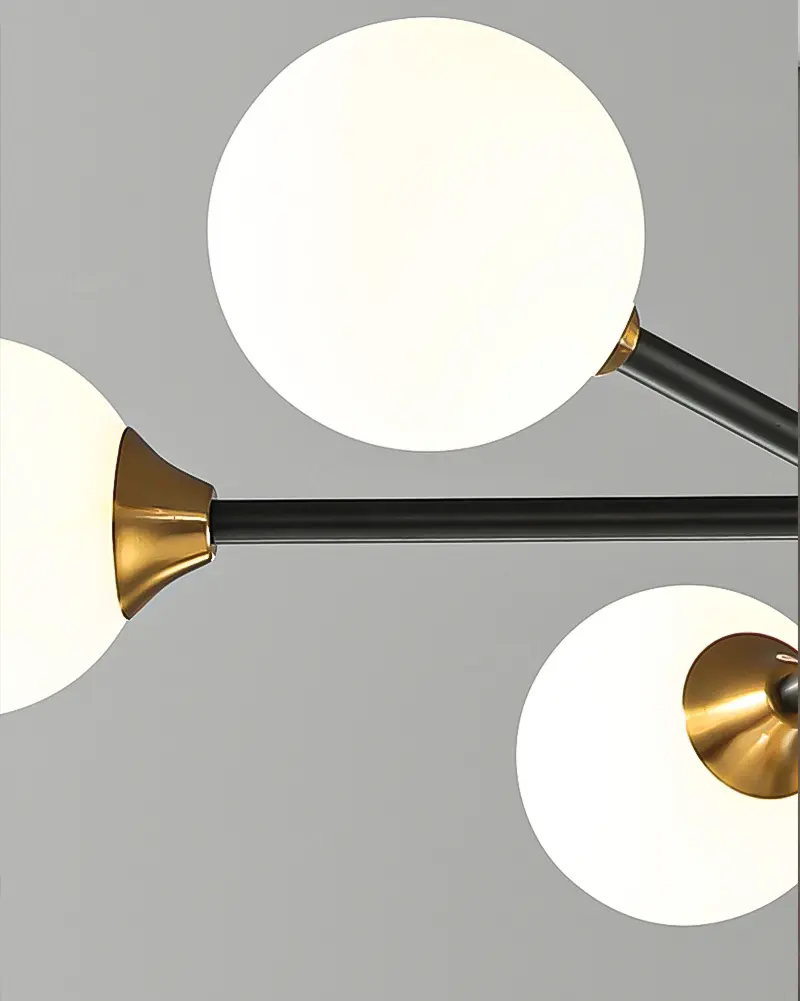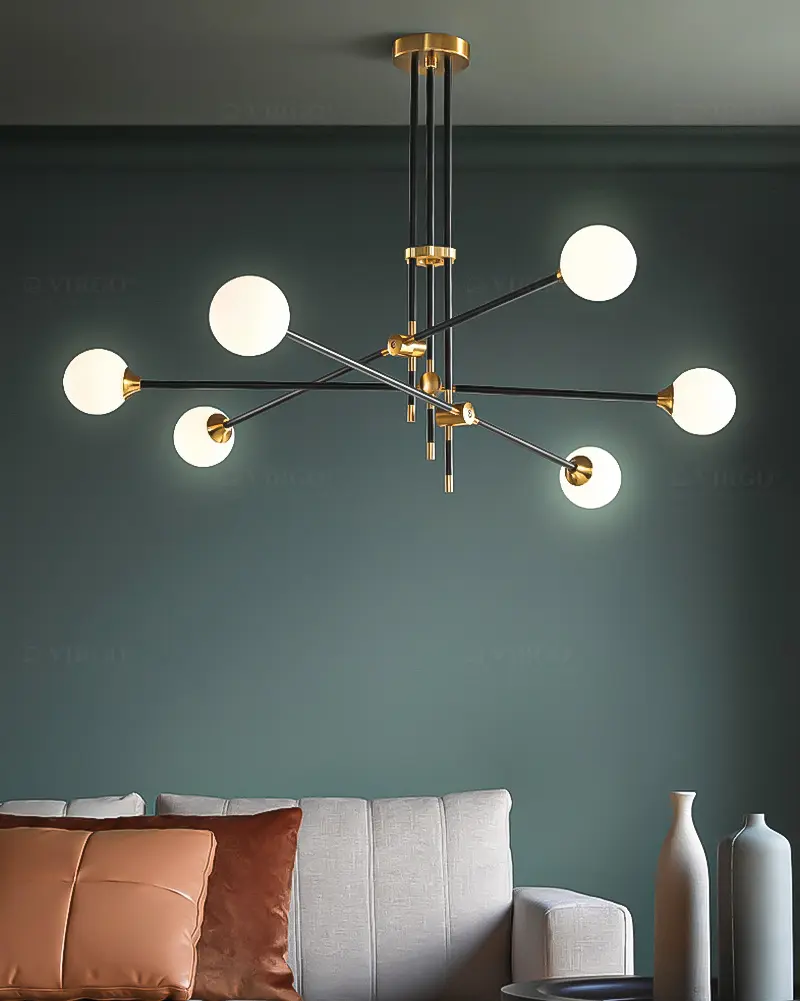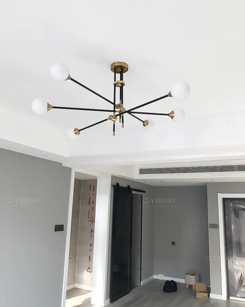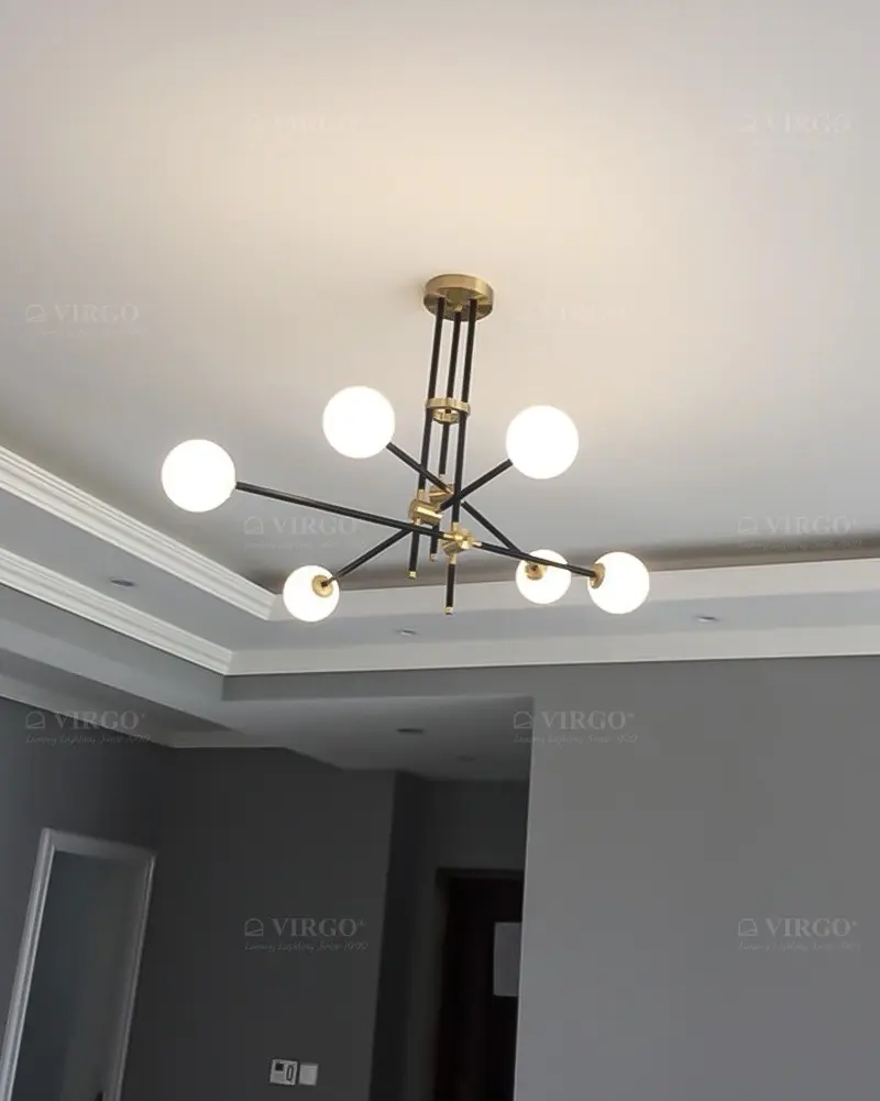 Thủy tinh là vật liệu được ưa chuộng hiện nay được sử dụng đẹp mắt trên Đèn chùm phân tử 6 bóng cao cấp P3205/6. Thủy tinh với các đặc tính trong suốt và truyền sáng tốt, nhẹ và cứng cáp, giúp tạo được kiểu dáng vô cùng thú vị cho bộ đèn.