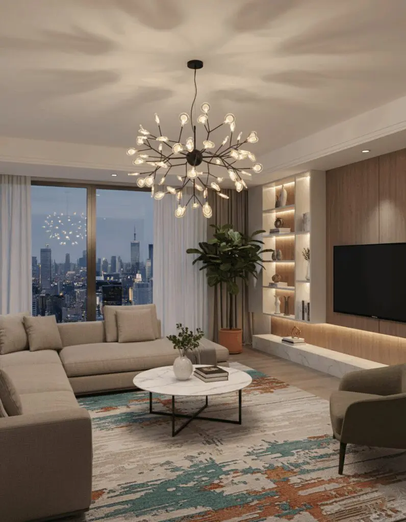 - Ánh Sáng Hiện Đại: 36 bóng đèn được phân bố ngẫu hứng, khuếch tán ánh sáng dịu nhẹ và đồng đều, rất phù hợp cho không gian phòng khách, bàn ăn hoặc phòng ngủ theo phong cách hiện đại, tối giản hoặc công nghiệp nhẹ.