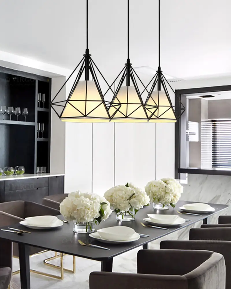 Vải là vật liệu được ưa chuộng hiện nay được sử dụng đẹp mắt trên Đèn thả trang trí khung kim cương P3015/1. Vải với các đặc tính trong suốt và truyền sáng tốt, nhẹ và cứng cáp, giúp tạo được kiểu dáng vô cùng thú vị cho bộ đèn.