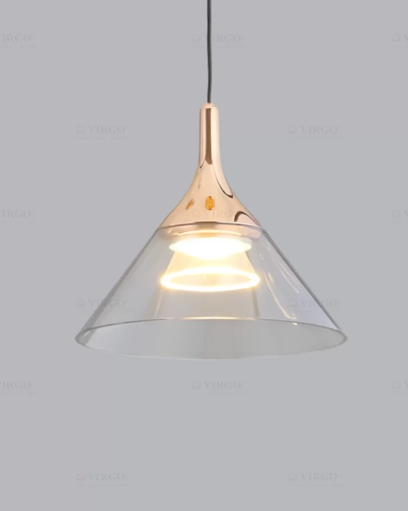 Thủy tinh acrylic là vật liệu được ưa chuộng hiện nay được sử dụng đẹp mắt trên Đèn thả thủy tinh trang trí cao cấp P19360. Thủy tinh acrylic với các đặc tính trong suốt và truyền sáng tốt, nhẹ và cứng cáp, giúp tạo được kiểu dáng vô cùng thú vị cho bộ đèn.