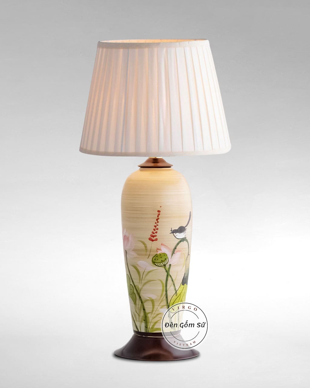 Khung Đèn bàn trang trí, đèn ngủ Gốm sứ Việt Nam Hoa sen TS06 sử dụng vật liệu Gốm, Vải chịu nhiệt, vật liệu vừa mang đến trọng lượng nhẹ, sử dụng an toàn, vừa đảm bảo sự cứng cáp, sử dụng bền lâu. Đèn bàn trang trí, đèn ngủ Gốm sứ Việt Nam Hoa sen TS06 cho khả năng sử dụng bền bỉ, lâu dài.