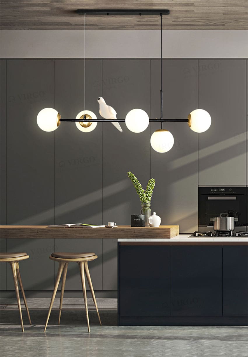 Thủy tinh là vật liệu được ưa chuộng hiện nay được sử dụng đẹp mắt trên Đèn thả trang trí phong cách hiện đại THCN284. Thủy tinh với các đặc tính trong suốt và truyền sáng tốt, nhẹ và cứng cáp, giúp tạo được kiểu dáng vô cùng thú vị cho bộ đèn.