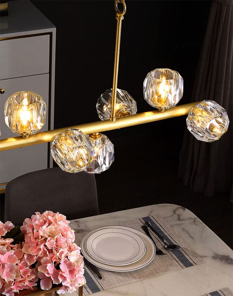 Pha lê cao cấp là vật liệu được ưa chuộng hiện nay được sử dụng đẹp mắt trên Đèn thả trang trí pha lê cao cấp TTK64N. Pha lê cao cấp với các đặc tính trong suốt và truyền sáng tốt, nhẹ và cứng cáp, giúp tạo được kiểu dáng vô cùng thú vị cho bộ đèn.