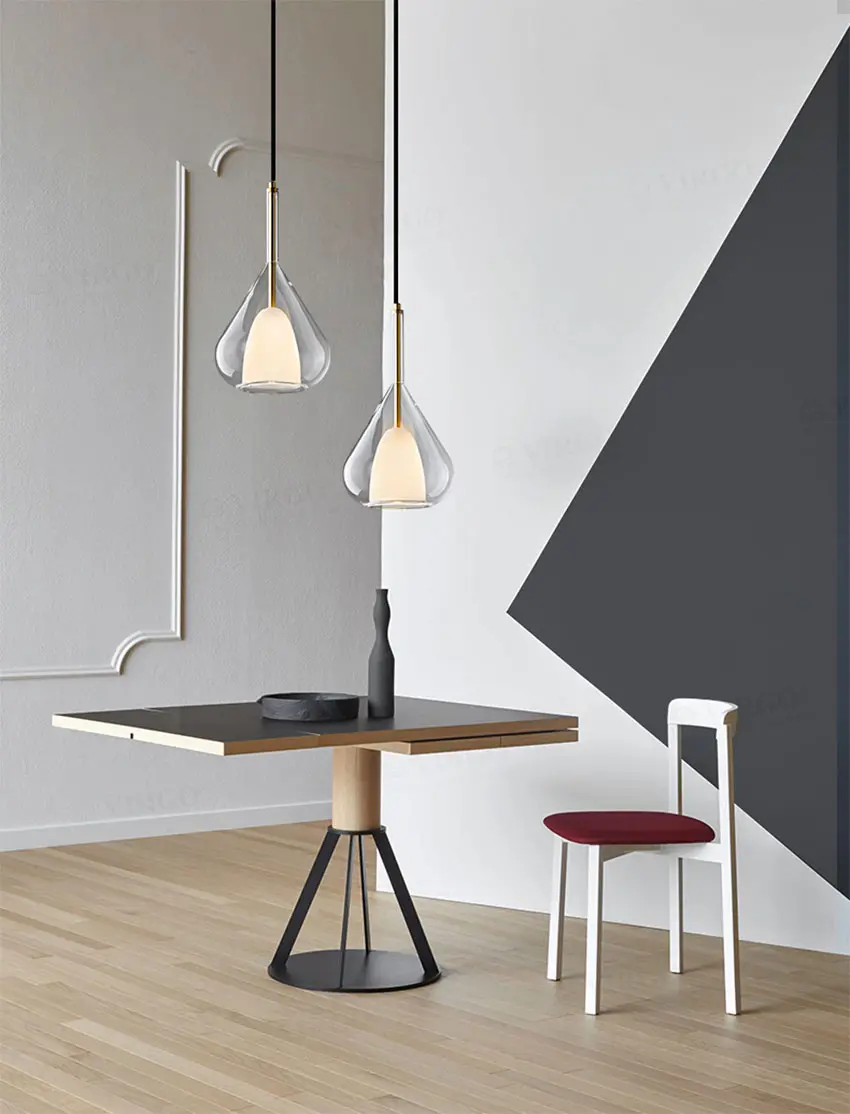 Thủy tinh là vật liệu được ưa chuộng hiện nay được sử dụng đẹp mắt trên Đèn thả trang trí thủy tinh cao cấp TT53. Thủy tinh với các đặc tính trong suốt và truyền sáng tốt, nhẹ và cứng cáp, giúp tạo được kiểu dáng vô cùng thú vị cho bộ đèn.