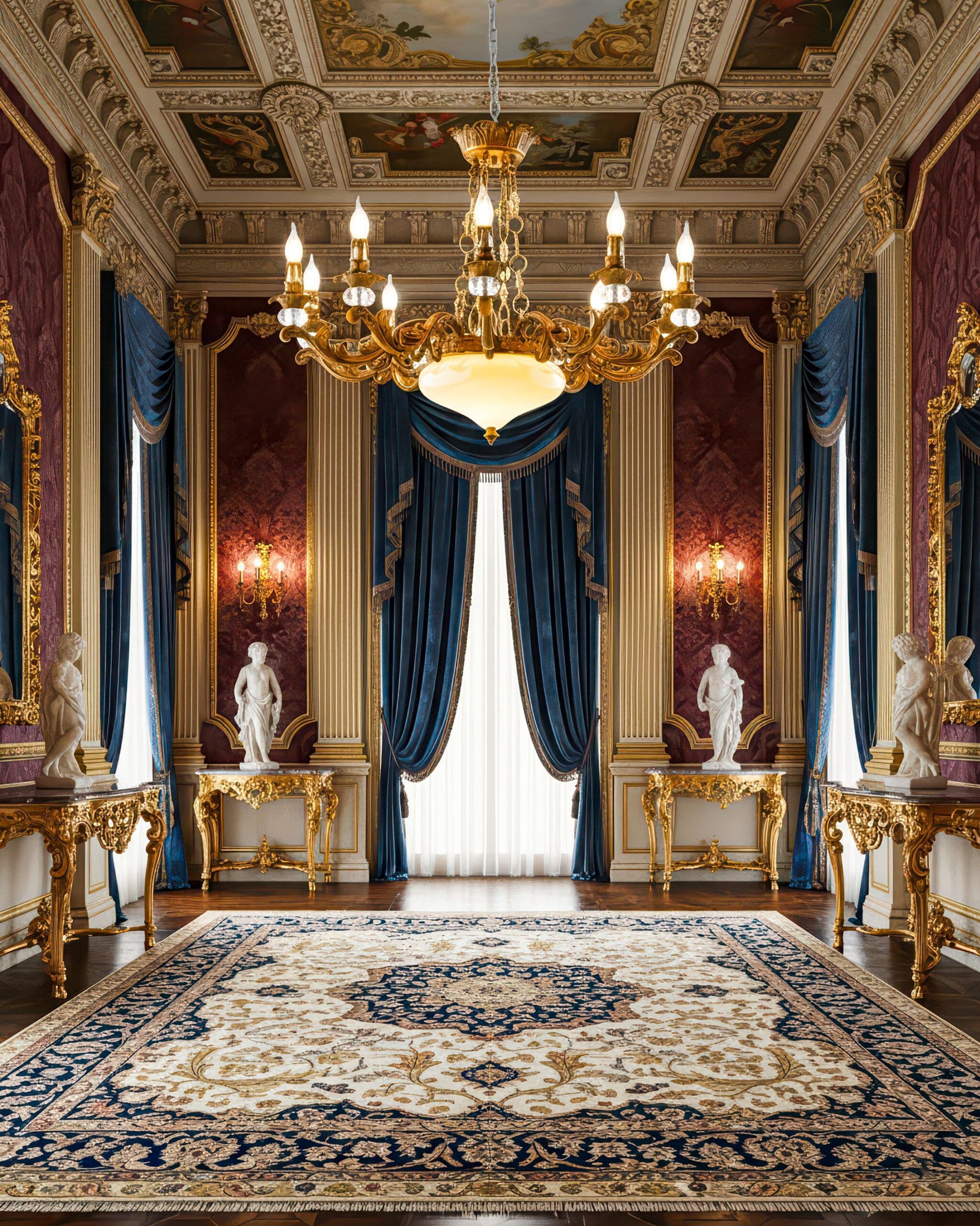 Theo quan niệm phong thủy Á Đông, trần nhà là bầu trời, đại diện cho những cơ hội và sự che chở. Việc treo một chiếc đèn chùm tân cổ điển rực rỡ ở vị trí trung tâm (Trung cung) của phòng khách có ý nghĩa cực kỳ quan trọng.