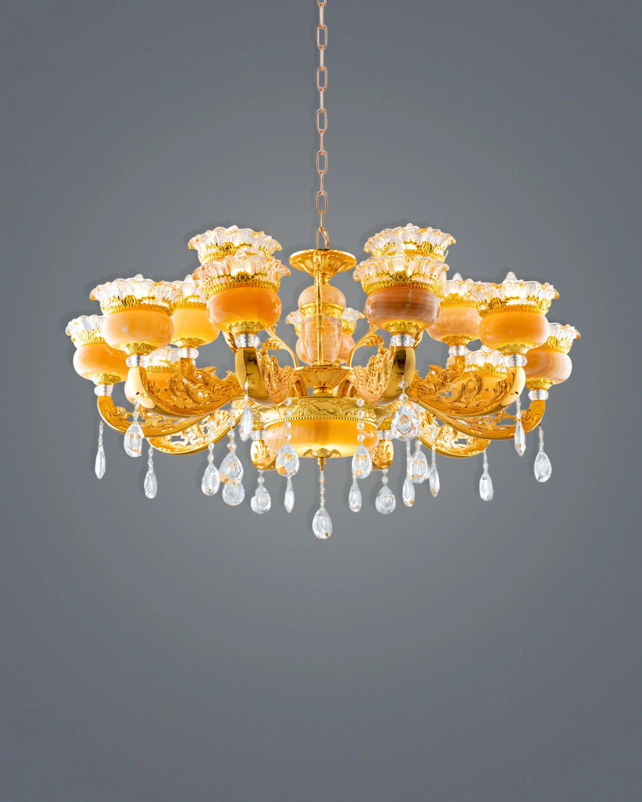 Đèn Chùm Tân Cổ Điển Bát Đá Ngọc Hổ Phách VRG-CNQT-124