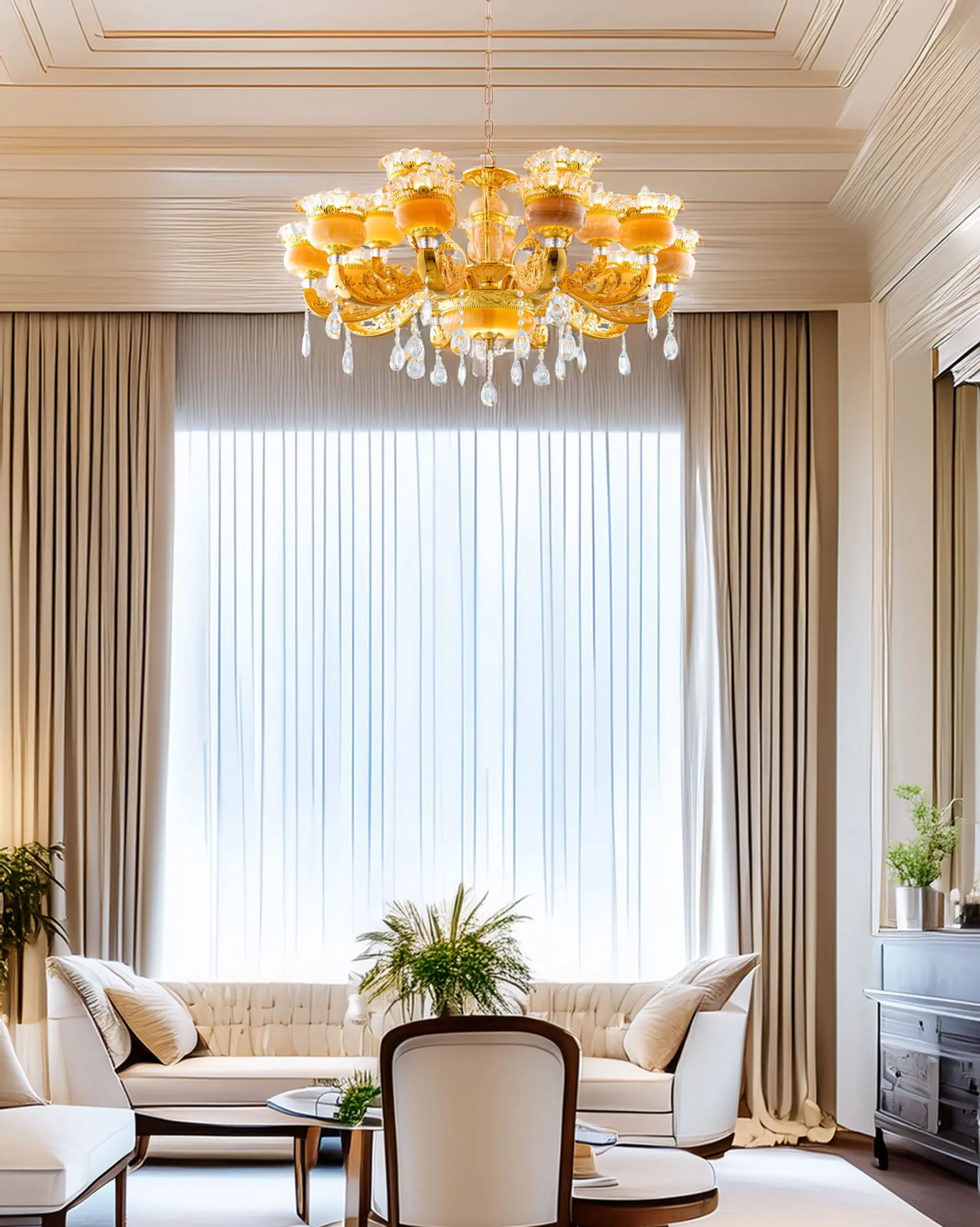 Dù bạn treo ở phòng khách, phòng ăn hay sảnh thông tầng, đèn chùm tân cổ điển VRG-CNQT-124 vẫn luôn biết cách tỏa sáng và tôn vinh gu thẩm mỹ tinh tường của gia chủ.
