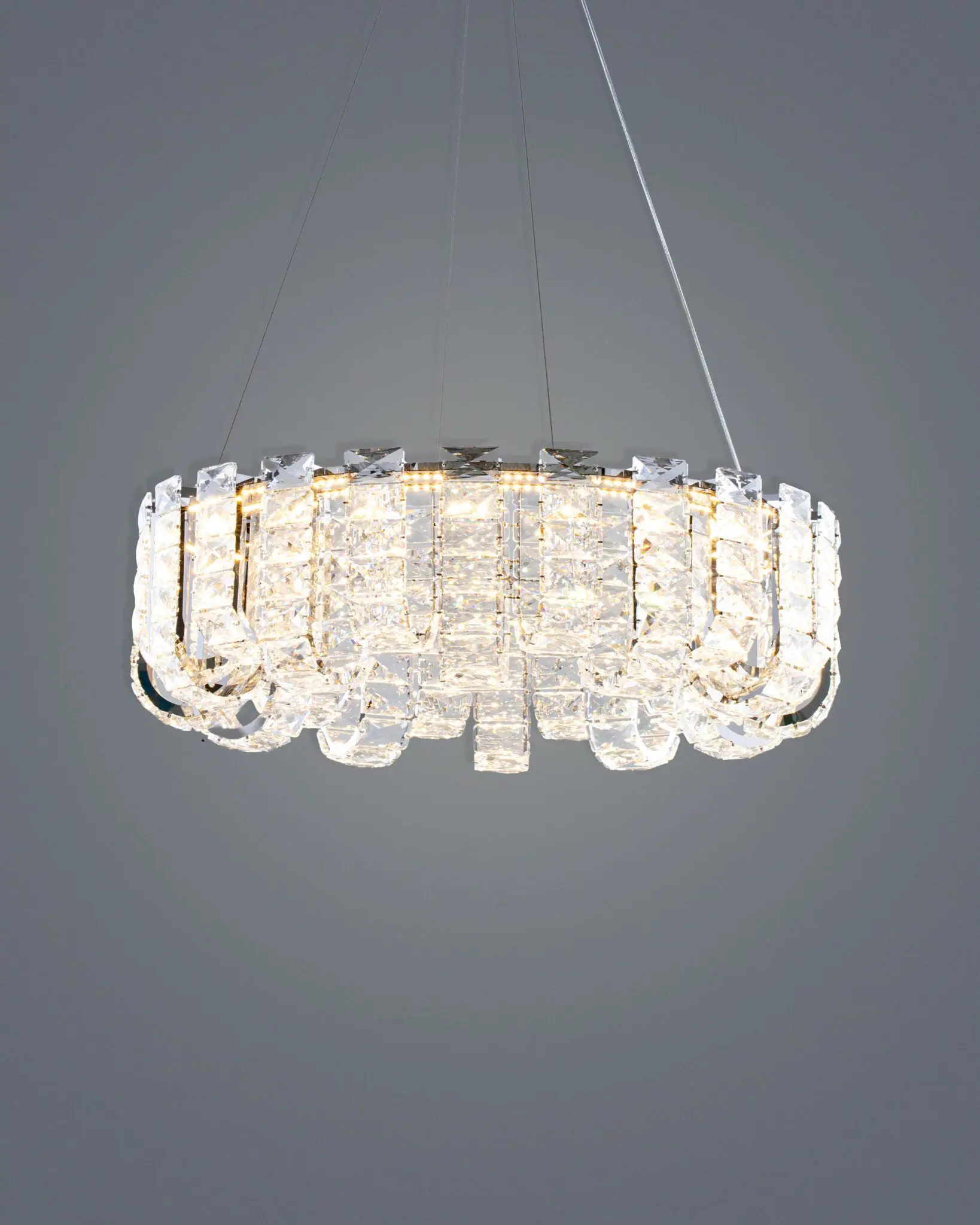 Được chế tác tỉ mỉ với nhiều góc cạnh sắc sảo, từng viên pha lê đóng vai trò như một lăng kính quang học. Khi ánh sáng đèn LED bật lên, chiếc đèn thả pha lê này sẽ tạo ra một màn trình diễn ánh sáng mãn nhãn. Những tia sáng tán sắc thành bảy màu cầu vồng lấp lánh, nhảy múa trên các bức tường và mặt bàn, biến không gian sống của bạn trở nên lung linh và huyền ảo như một cung điện thu nhỏ.