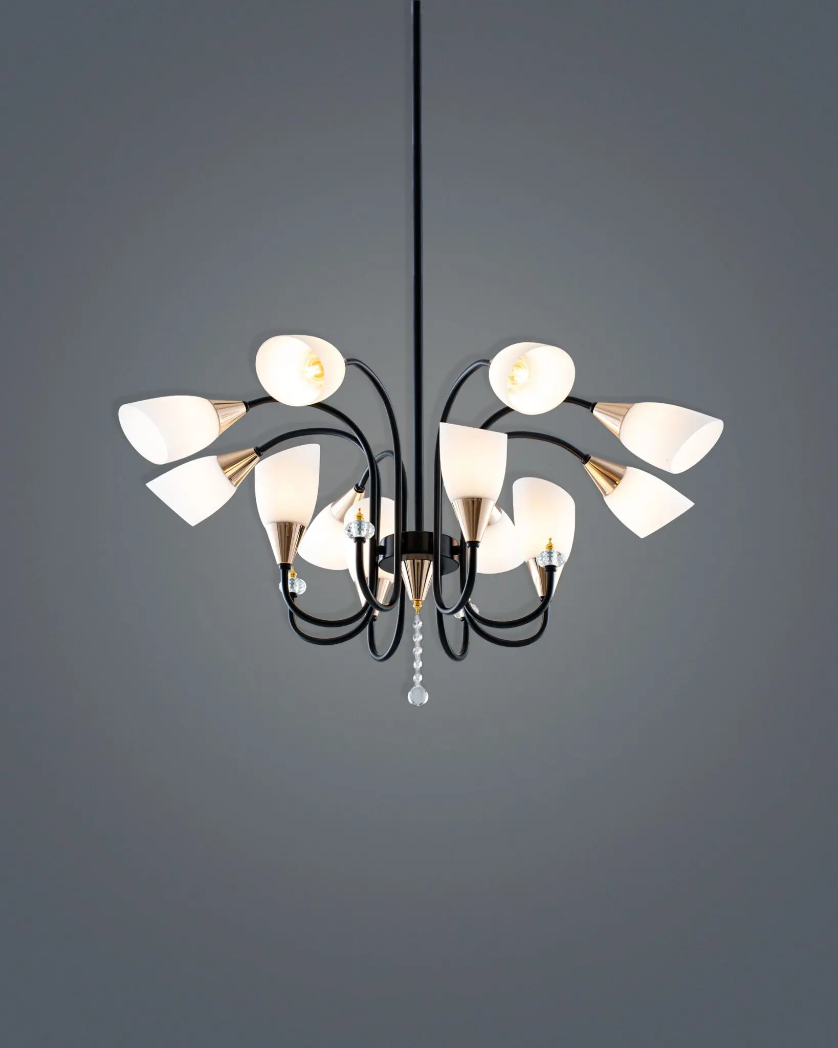 Đèn Chùm Tân Cổ Điển Khung Đen Phối Vàng Chao Thủy Tinh VRG-T-9139-12 là sản phẩm có thiết kế với bóng LED chất lượng cao, đảm bảo khả năng sử dụng lâu bền với tuổi thọ tối đa đến 40.000 giờ. Ánh sáng ấm cúng, dễ chịu và bảo vệ cho mắt nhìn.