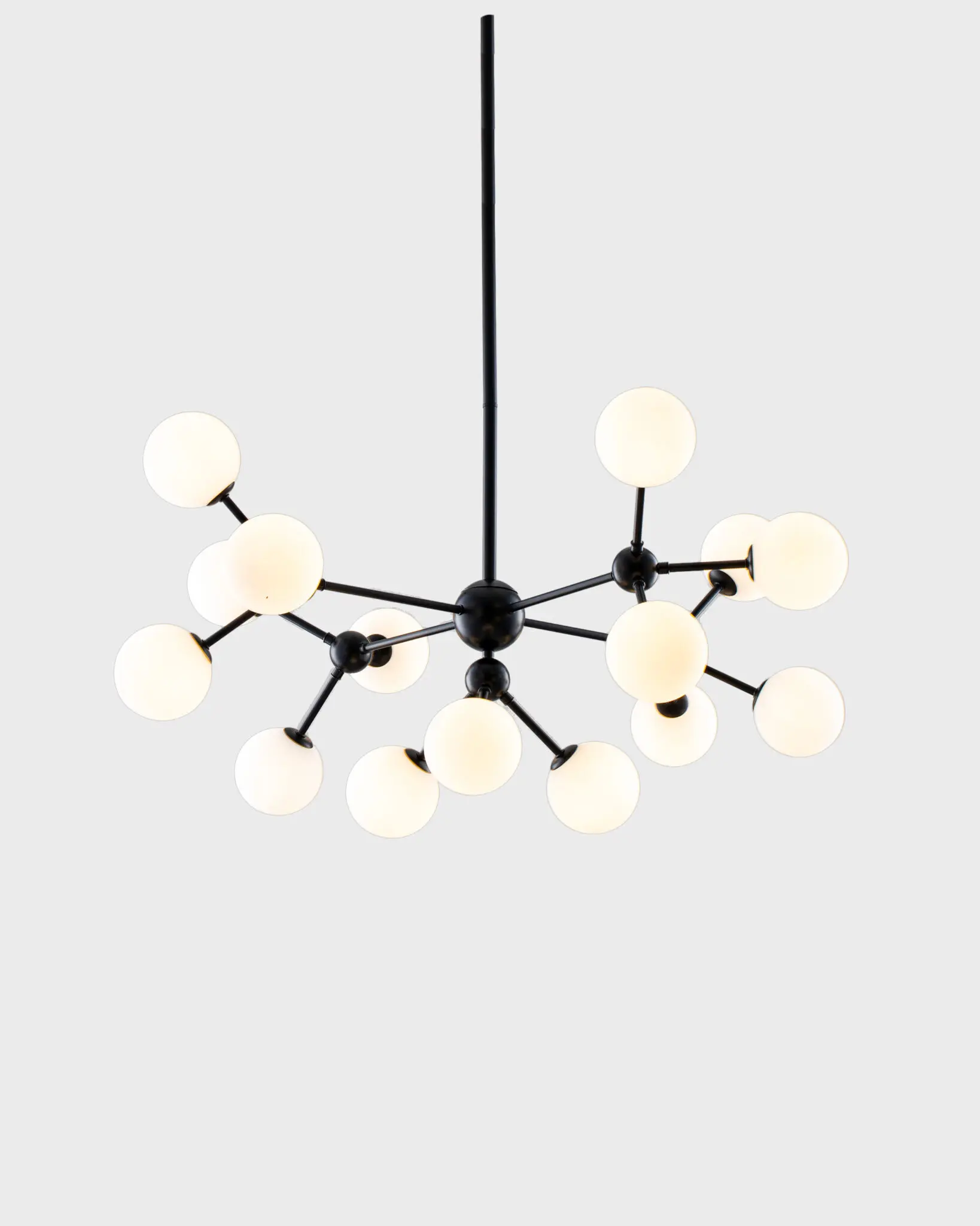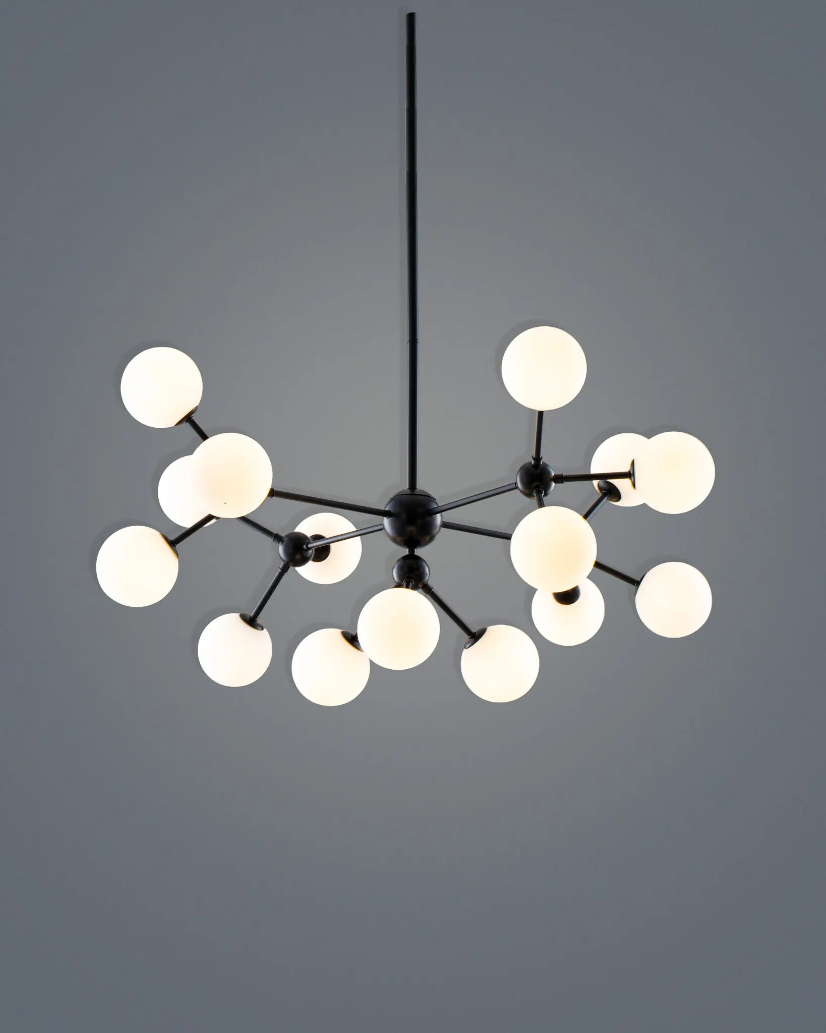 Đèn chùm phân tử (Molecular Chandelier) là xu hướng thiết kế lấy cảm hứng từ sự liên kết của các nguyên tử trong tự nhiên. Ở phiên bản 15 bóng này, cấu trúc ấy càng trở nên ấn tượng hơn: