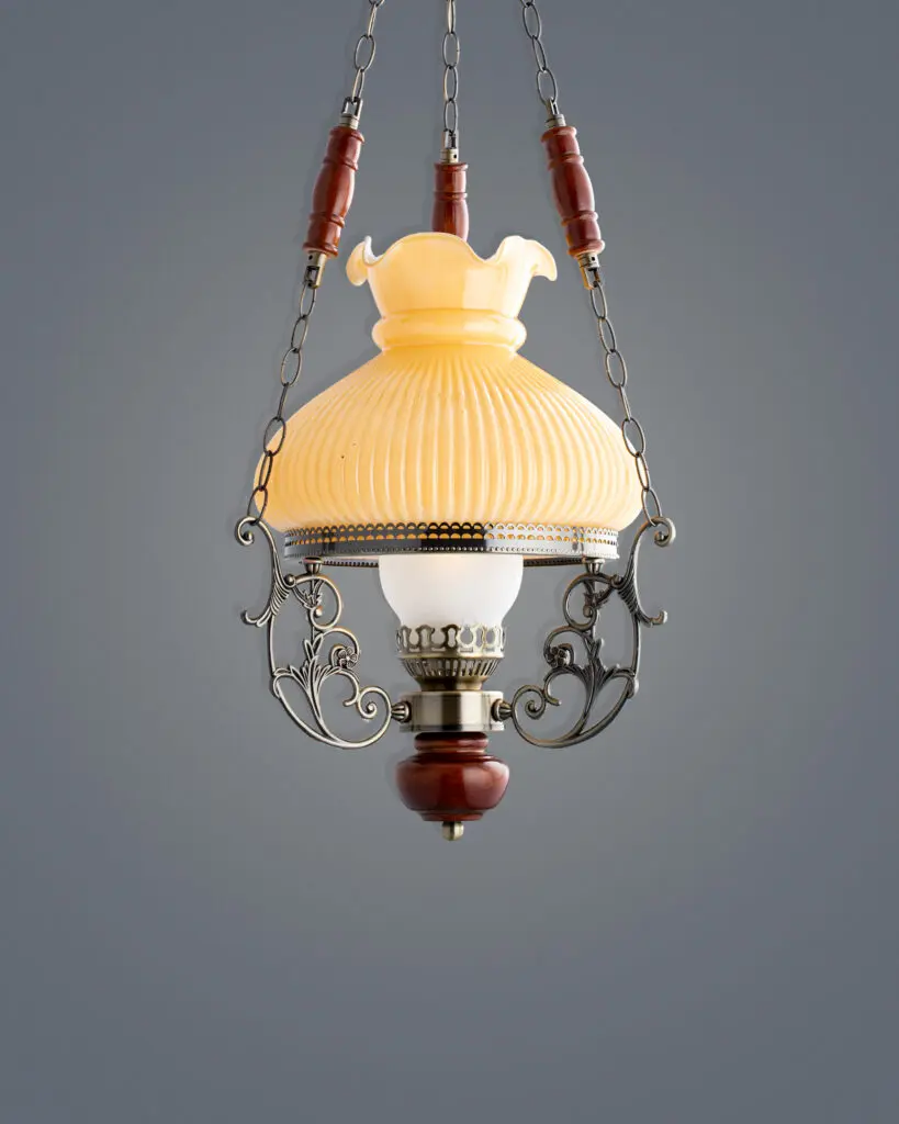 Mang đậm dấu ấn của thời gian, mẫu đèn thả cổ điển VRG-25031P là sự lựa chọn hoàn hảo cho những không gian tôn nghiêm hoặc mang phong cách hoài cổ. Chiếc đèn nổi bật với phần chao thủy tinh màu hổ phách dập ly tinh tế, tỏa ra ánh sáng vàng ấm cúng và an yên. Các chi tiết thân đèn bằng gỗ tự nhiên kết hợp cùng khung hợp kim mạ đồng giả cổ tạo nên vẻ đẹp vừa mộc mạc, vừa sang trọng, đậm chất Á Đông.