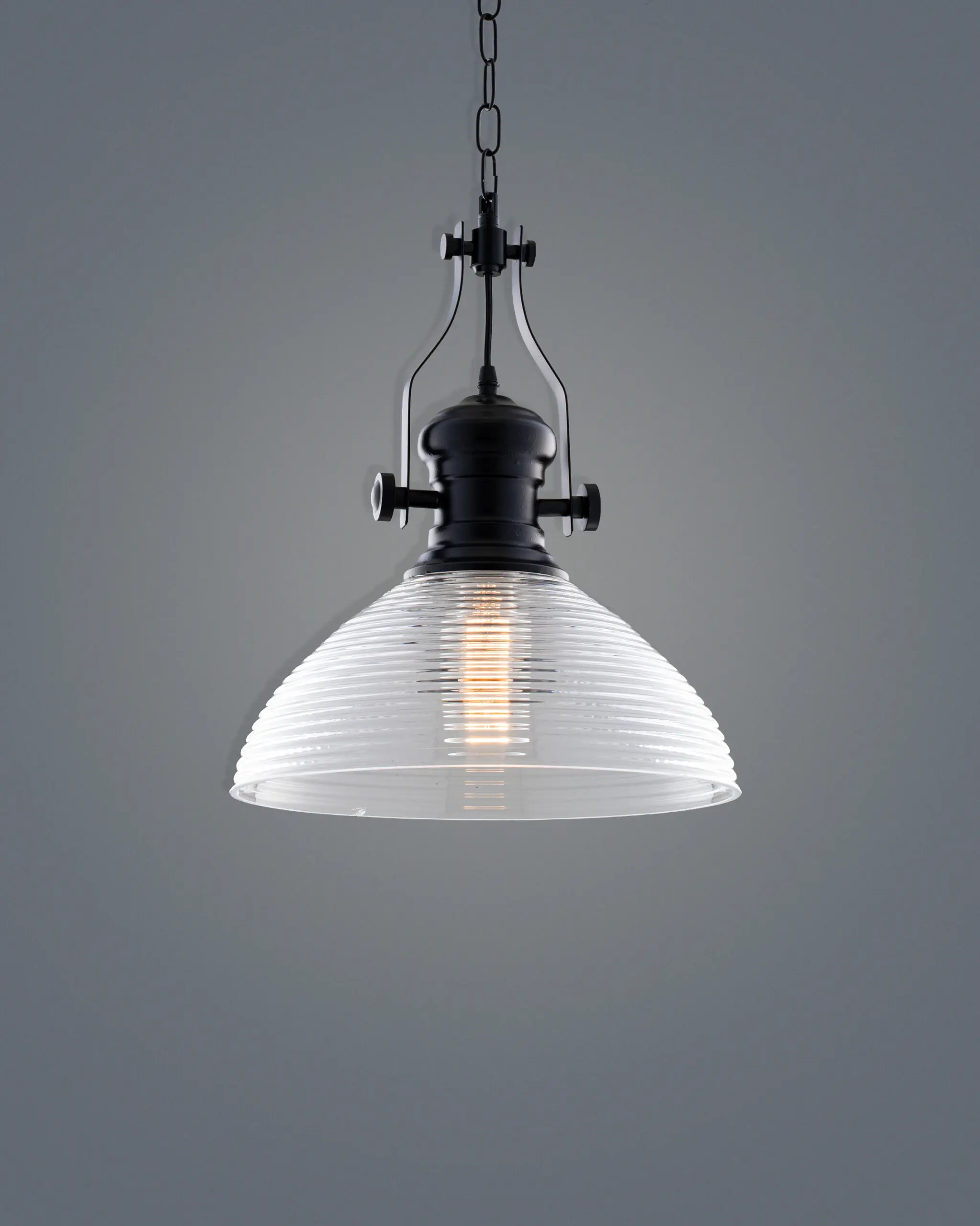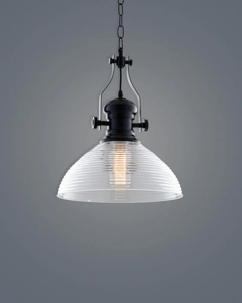 Đèn Thả Thủy Tinh Sọc Khung Quai Treo Đen Industrial VRG-T94-V2