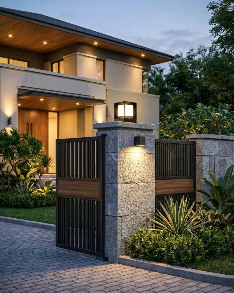 Chiếu sáng trụ cổng chính: Đây là vị trí lắp đặt quan trọng nhất, giúp làm nổi bật cổng nhà và biển số nhà.