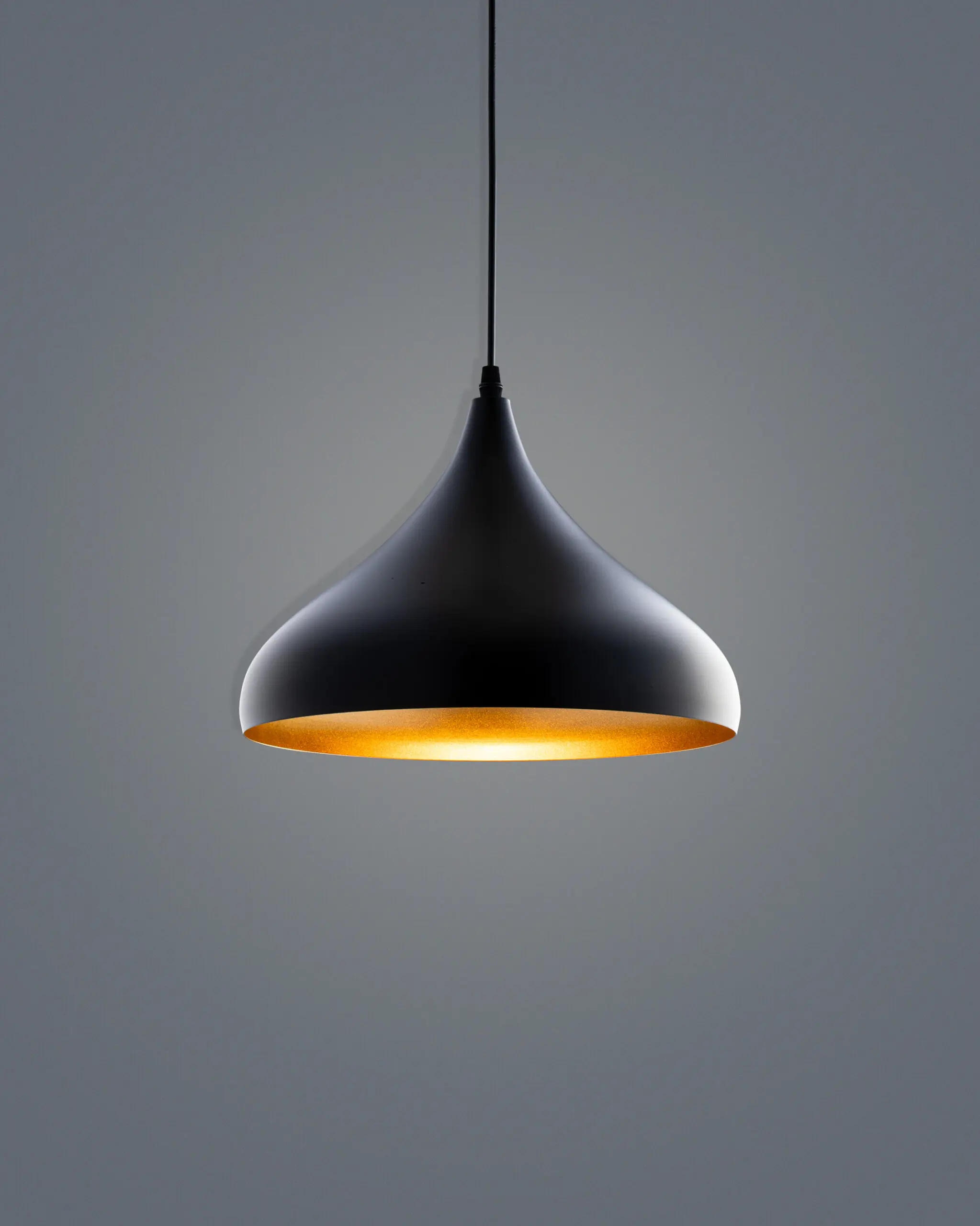 Đèn Thả Bàn Ăn Dáng Nón Hiện Đại Vỏ Đen Lòng Vàng VRG-T8810