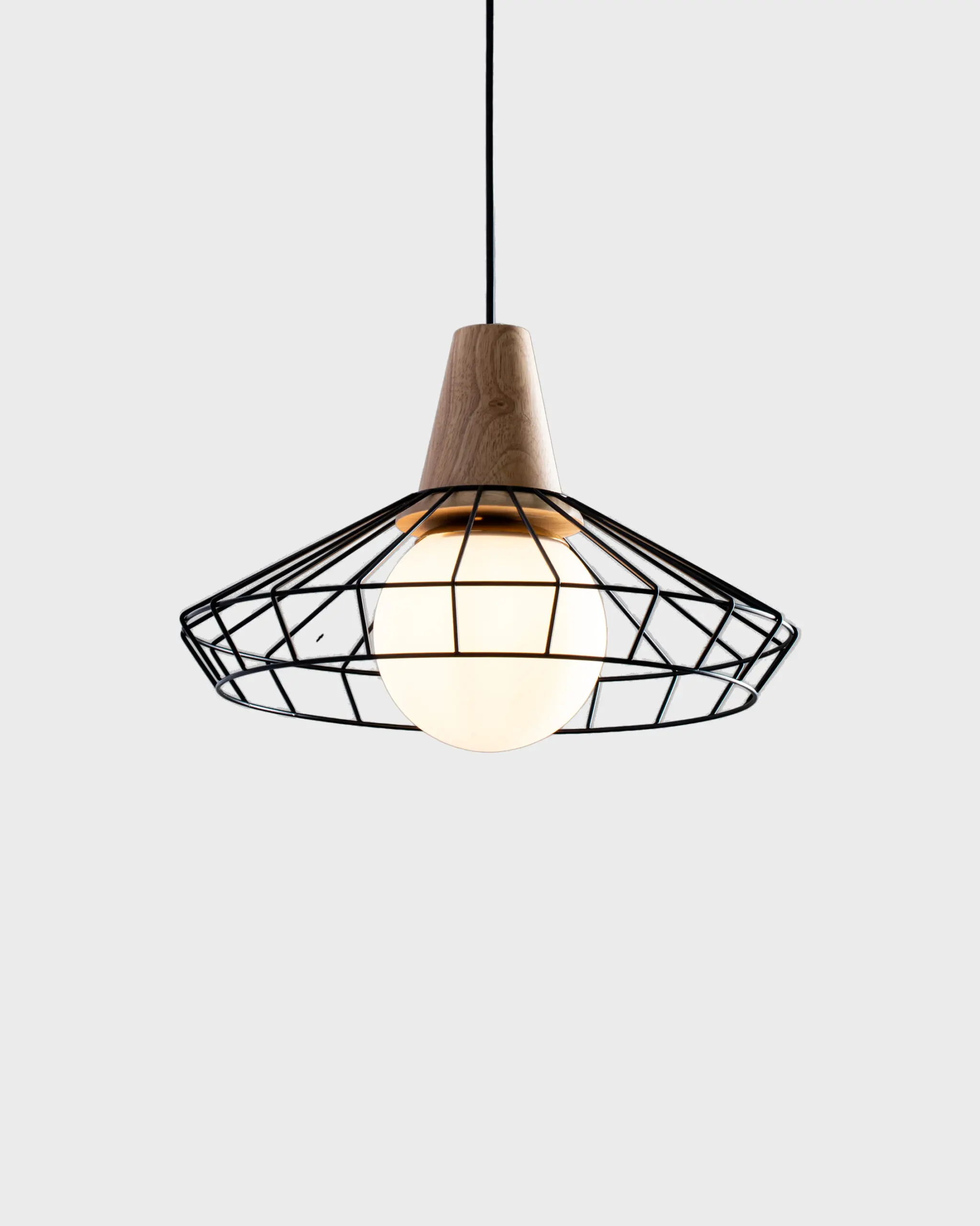 Phong cách Industrial: Lớp sơn tĩnh điện màu đen nhám (Matte Black) bao phủ toàn bộ khung đèn tạo nên vẻ đẹp mạnh mẽ, bụi bặm đặc trưng của phong cách Công nghiệp. Đây là mẫu đèn thả trần dễ dàng “ăn nhập” với các bức tường gạch thô, trần bê tông hay nội thất gỗ mộc.